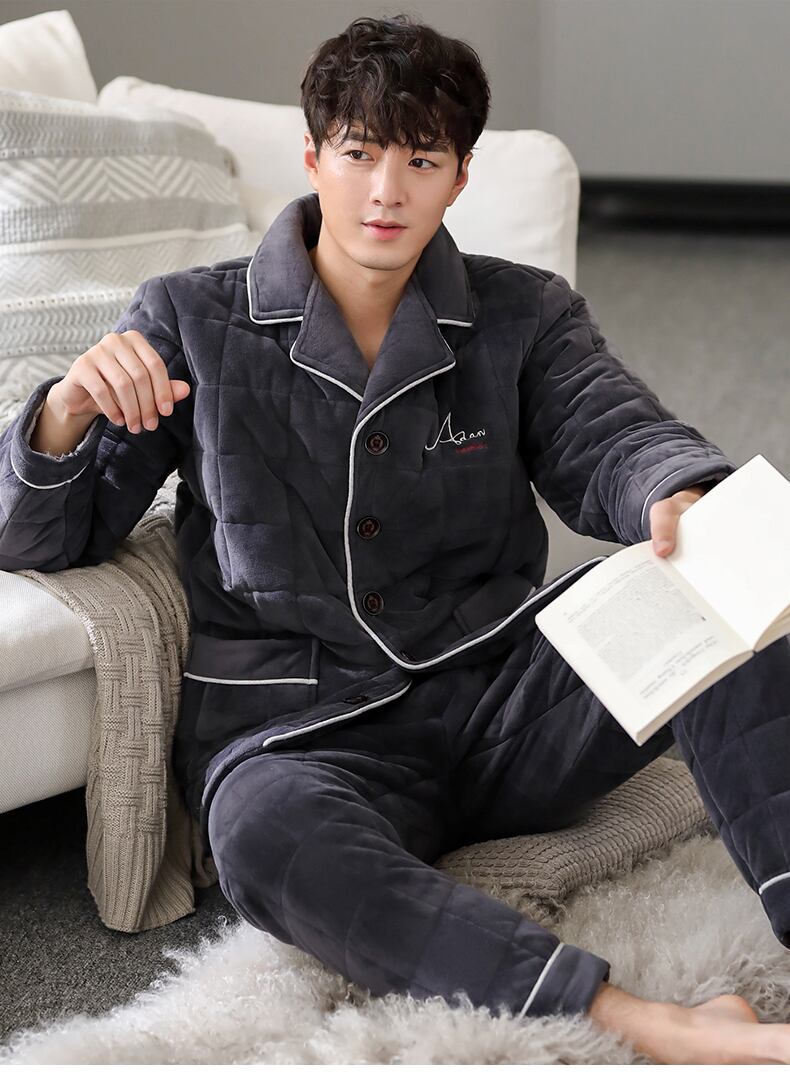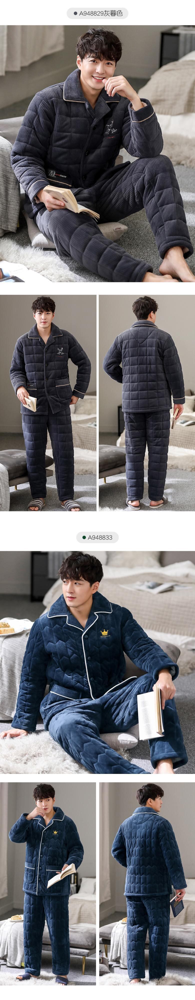 パジャマメンズ冬3層厚手のキルティングジャケットコーラルベルベットフランネル厚手とベルベット暖かい家庭服極厚 jial72290623366