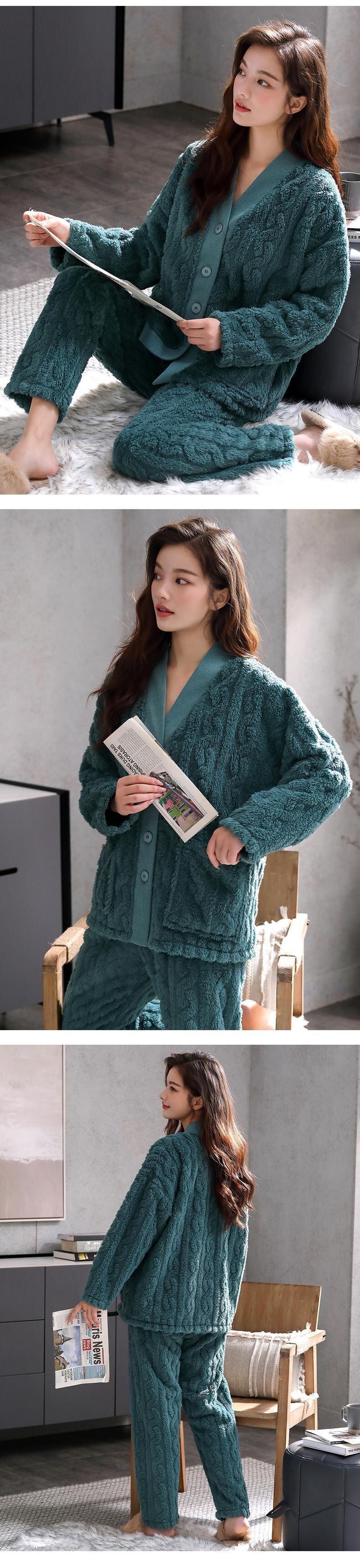 2021年の新しいパジャマ女性の秋と冬のモデル冬のサンゴのフリースが厚くなり、ベルベットのフランネルの家庭服の冬のスーツ jial98673478211