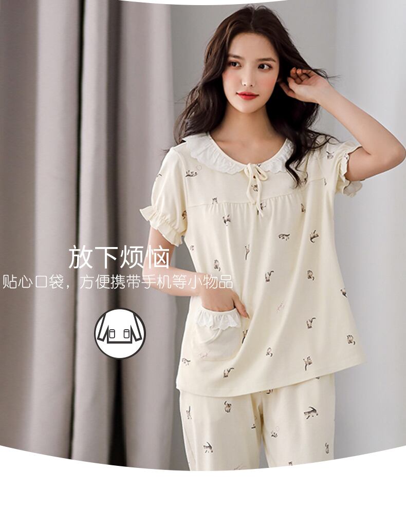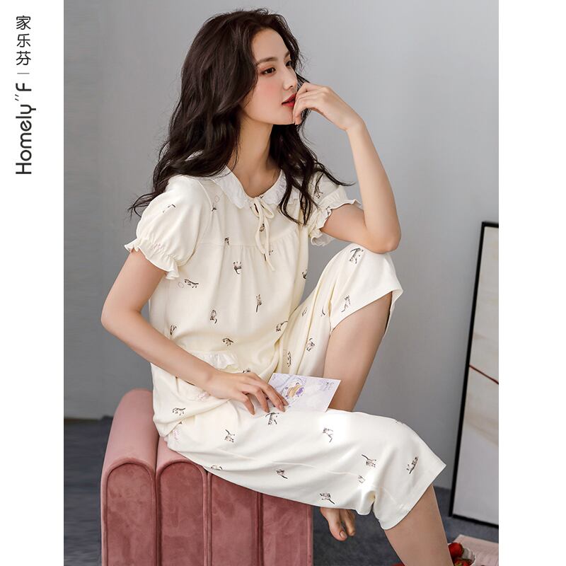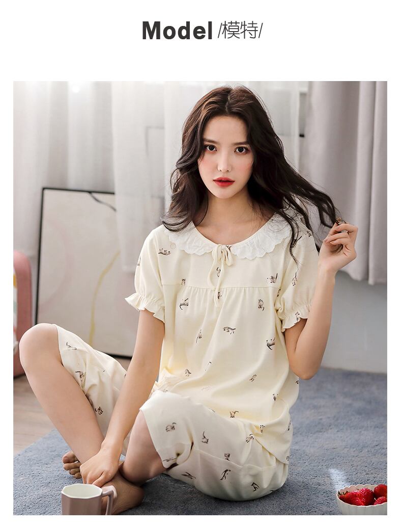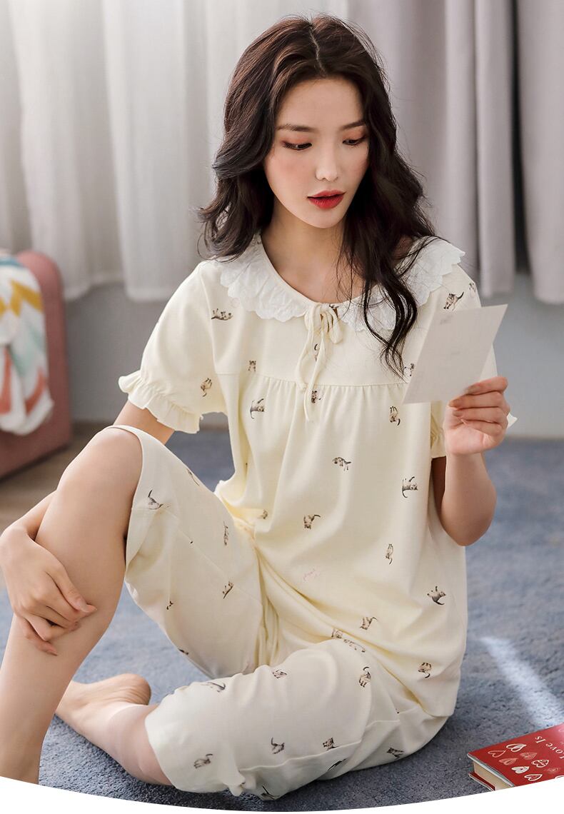 パジャマレディースサマーコットン半袖ショーツホームサービスサマーシンコットンeseかわいいスウィートスーツ jial54174610856