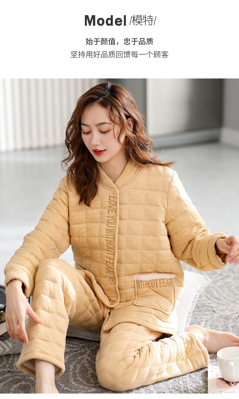 【ショッピングモールでも同じスタイル】エアコットンパジャマレディース春秋厚手コットン長袖秋冬コットンキルティング中間層 jial88500513643