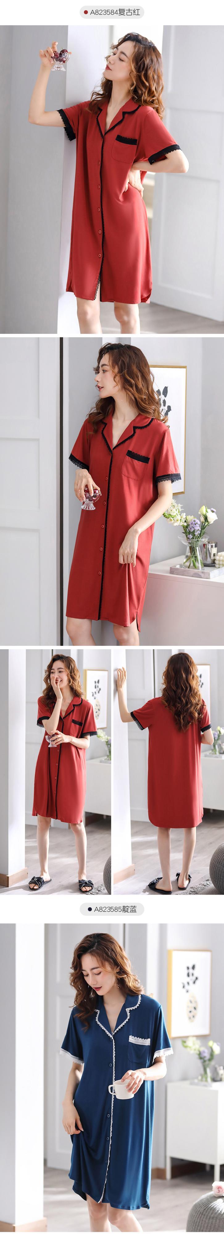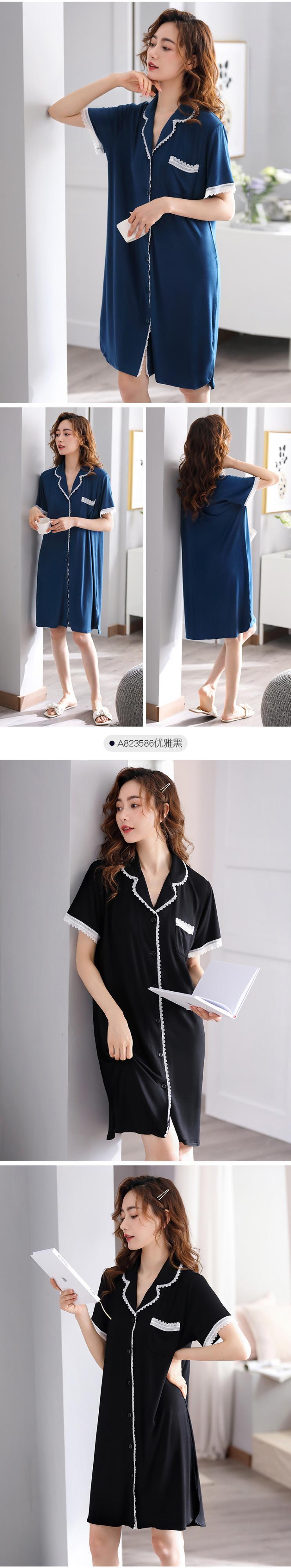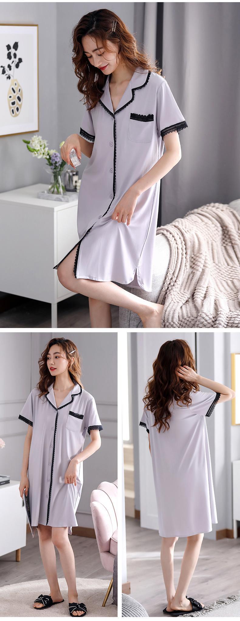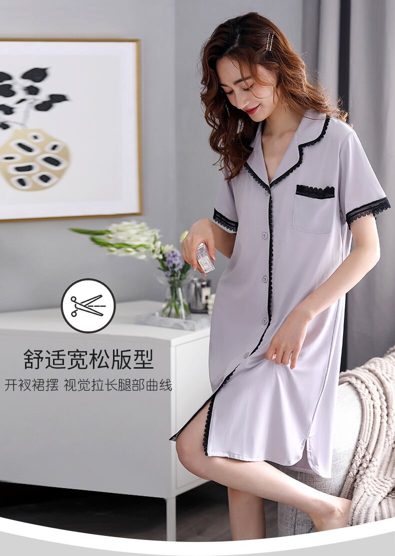 ネグリジェパジャマサマーモーダルコットンシルク半袖シャツカーディガンサマーシンアイスシルクロングプラスサイズ jial52365447191