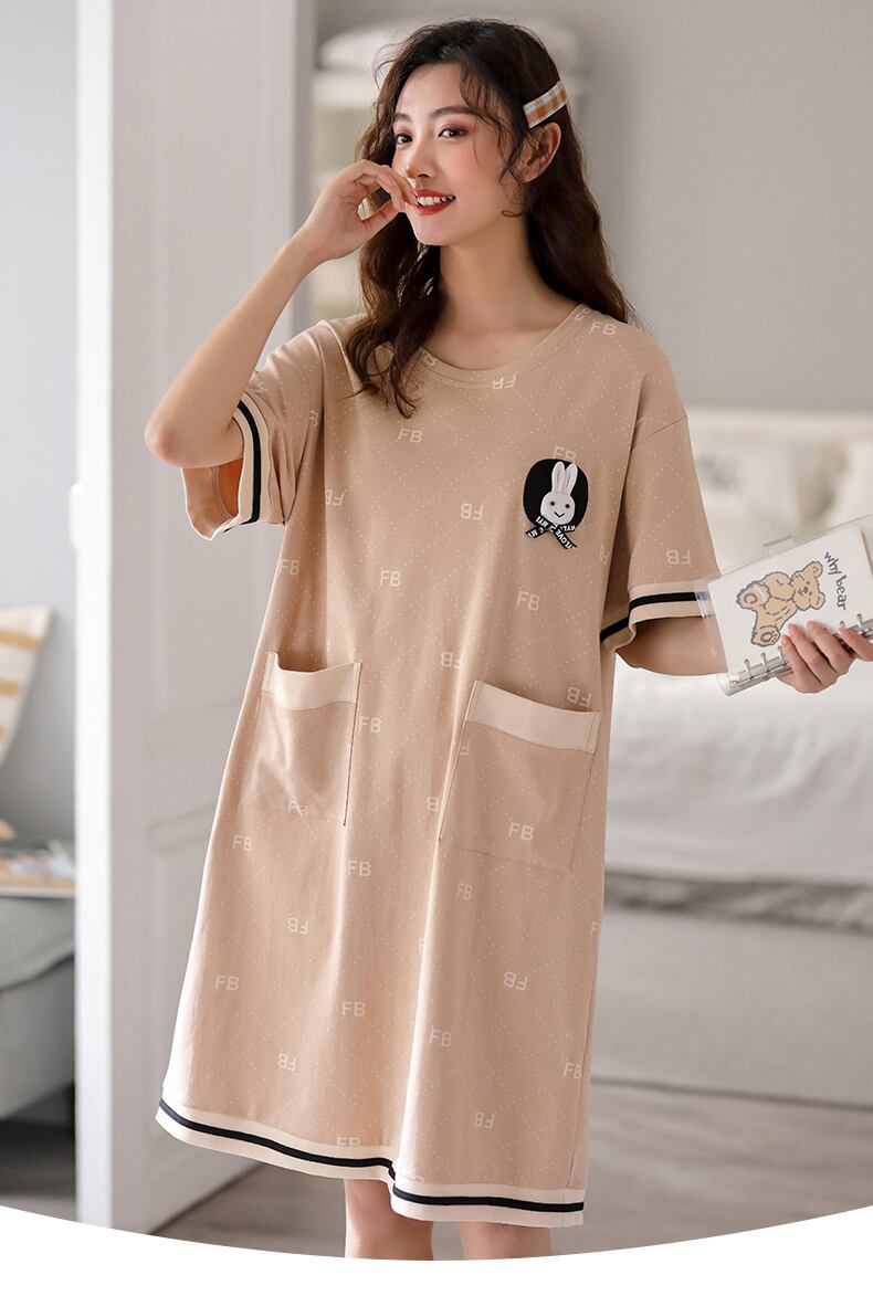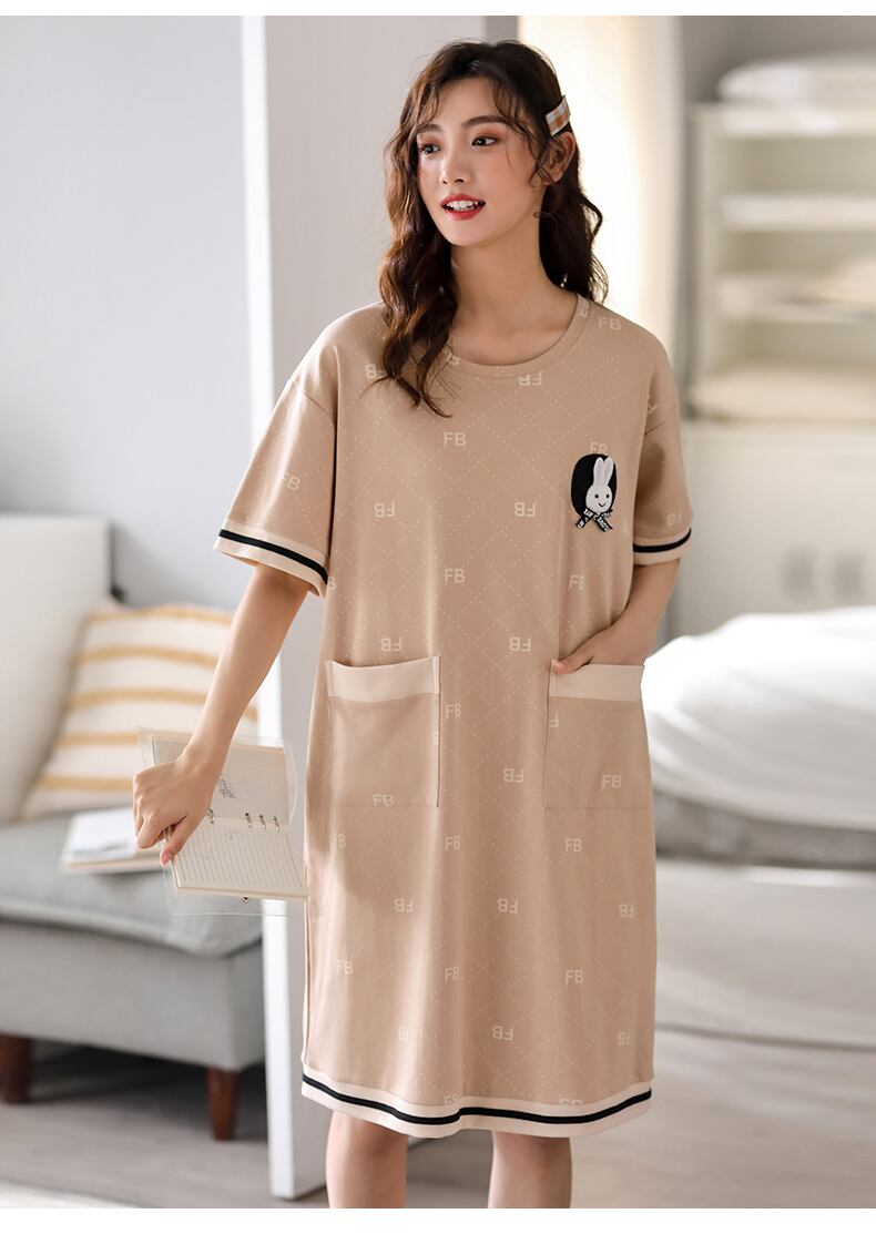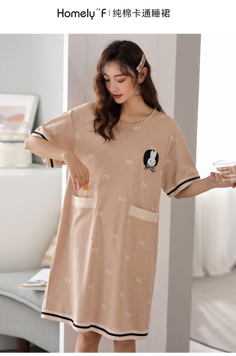 ネグリジェレディースパジャマスカート夏夏薄手の綿半袖家庭服ロングラージサイズかわいい外で着ることができます jial39069732694