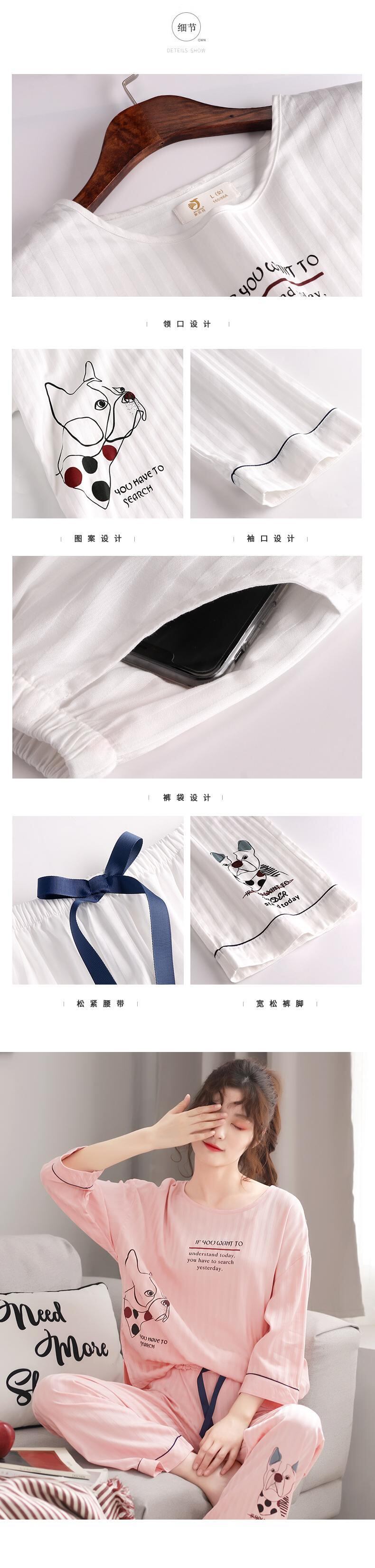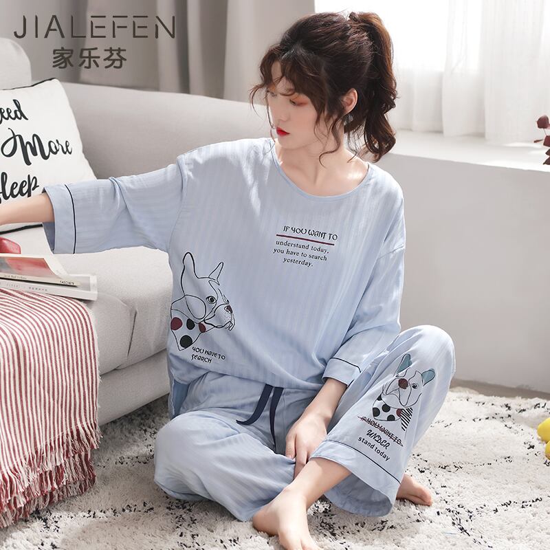 薄い春夏パジャマ長袖綿3/4袖家庭用品春と秋秋は外で着用することができます jial38628127302