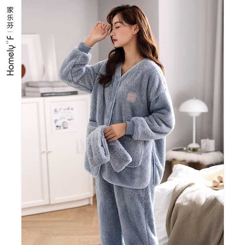 パジャマの女性の秋と冬のモデル冬の肥厚とベルベットのフランネル冬のコーラルフリースの家庭服は、女性のスーツの外で着用することができます jial35848996497
