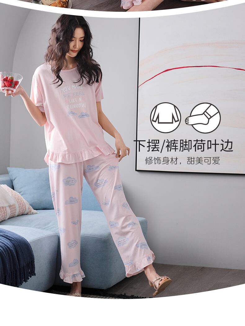 パジャマレディース夏半袖パンツモーダルコットンシルクコットンシルクホームウェア薄い夏eseかわいいスーツ jial25510498048