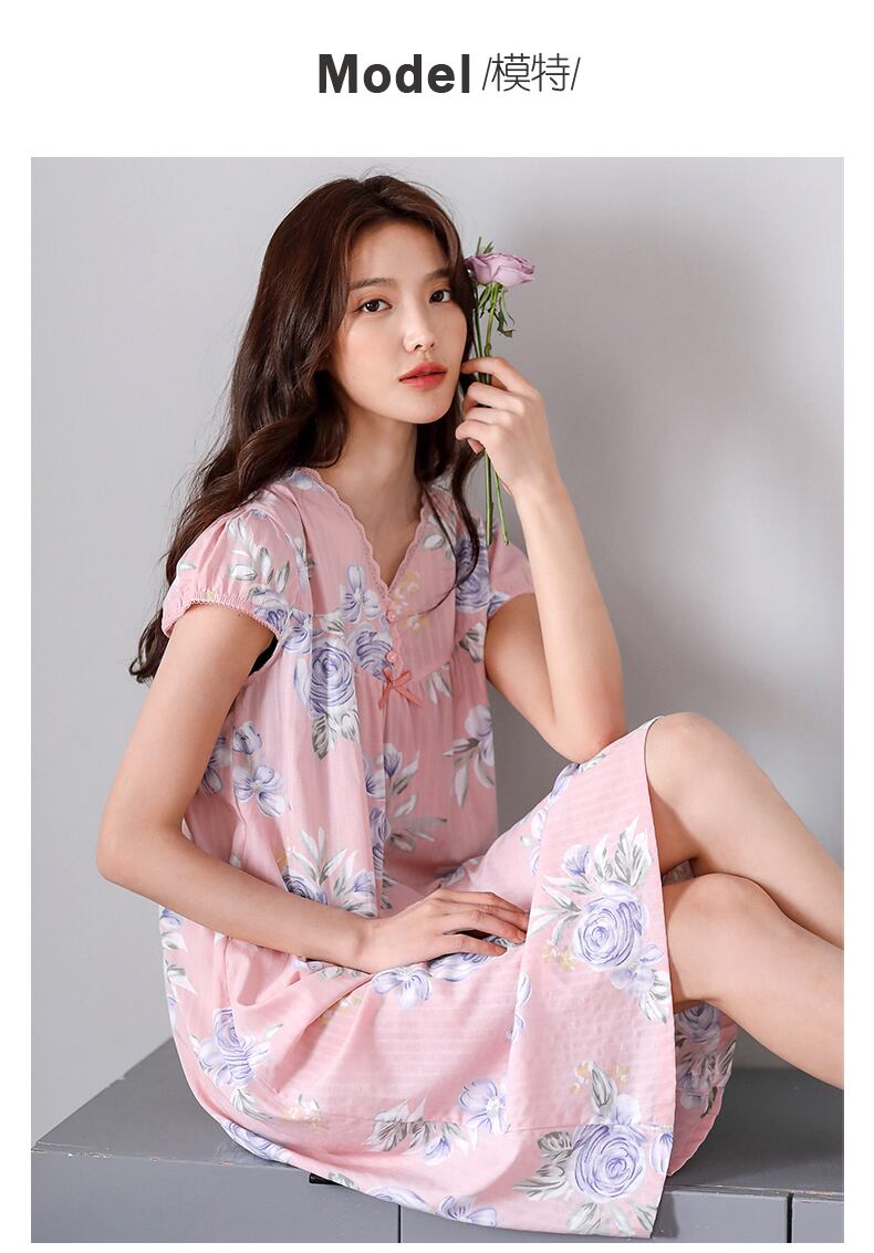 ネグリジェレディースパジャマ夏夏薄手の綿半袖中年母中年家庭着ドレス jial52969370655