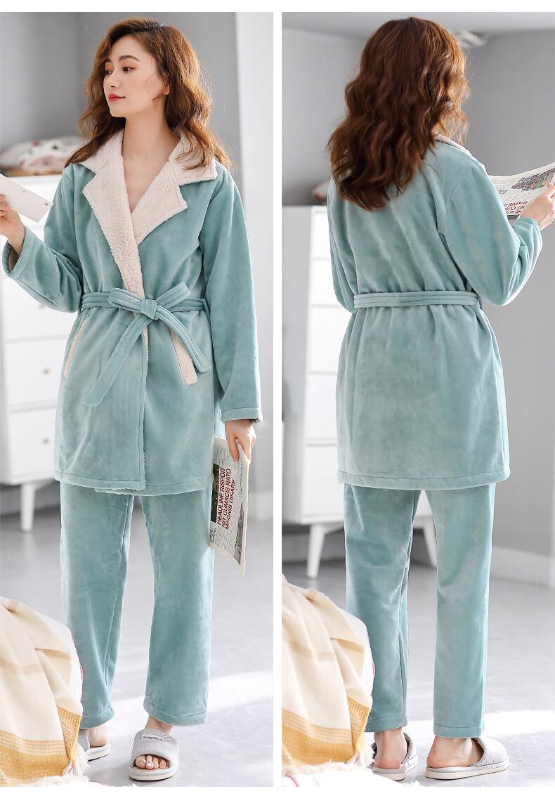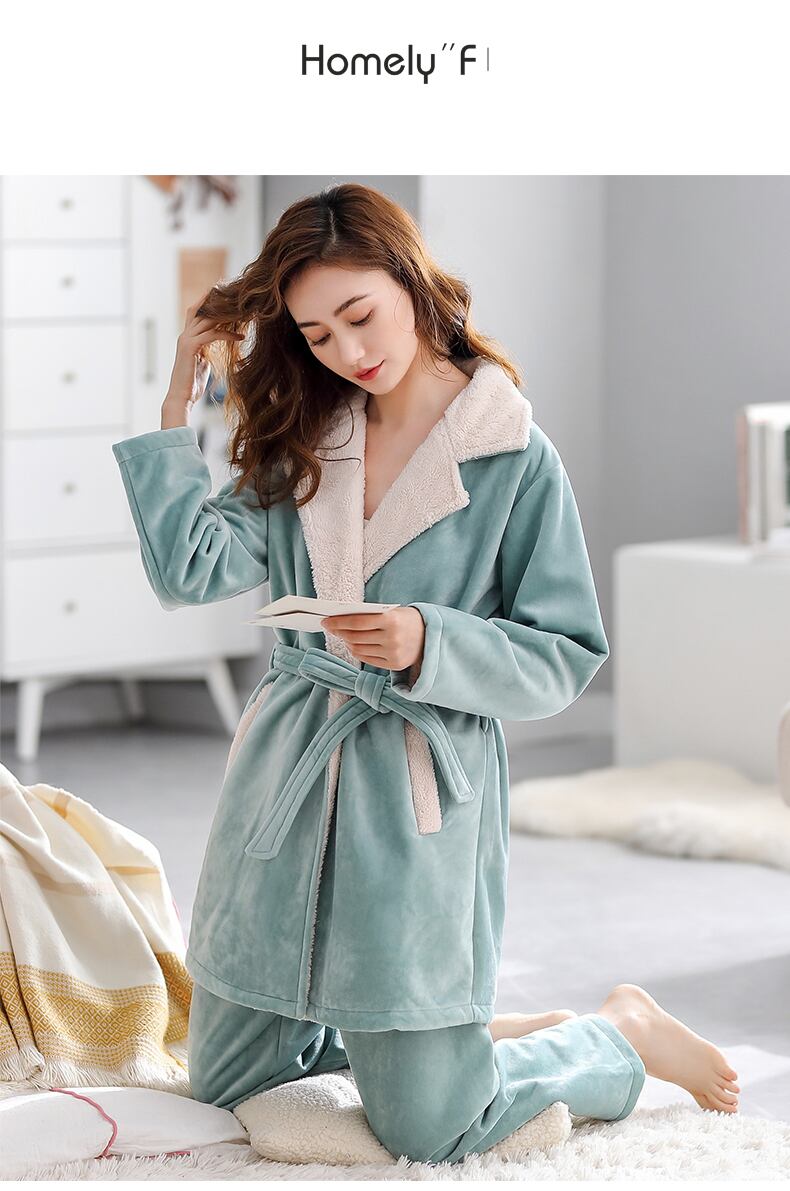 パジャマの女性の秋と冬のサンゴのフリースが厚くなり、ベルベットの暖かい複合キルティング冬のホームサービスナイトガウンのロングスーツ jial28000044372