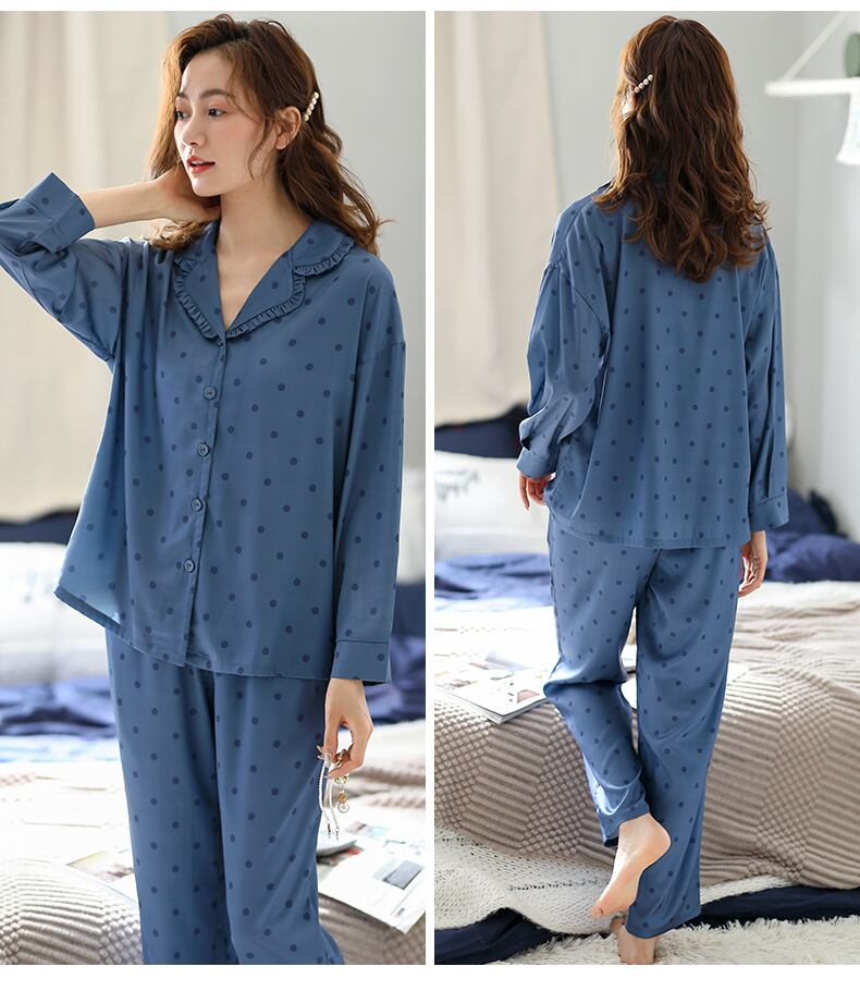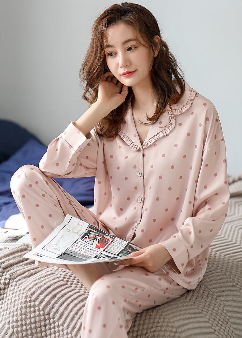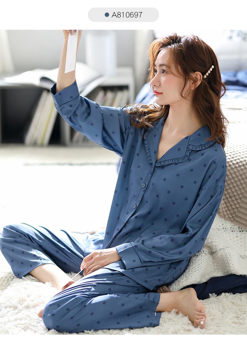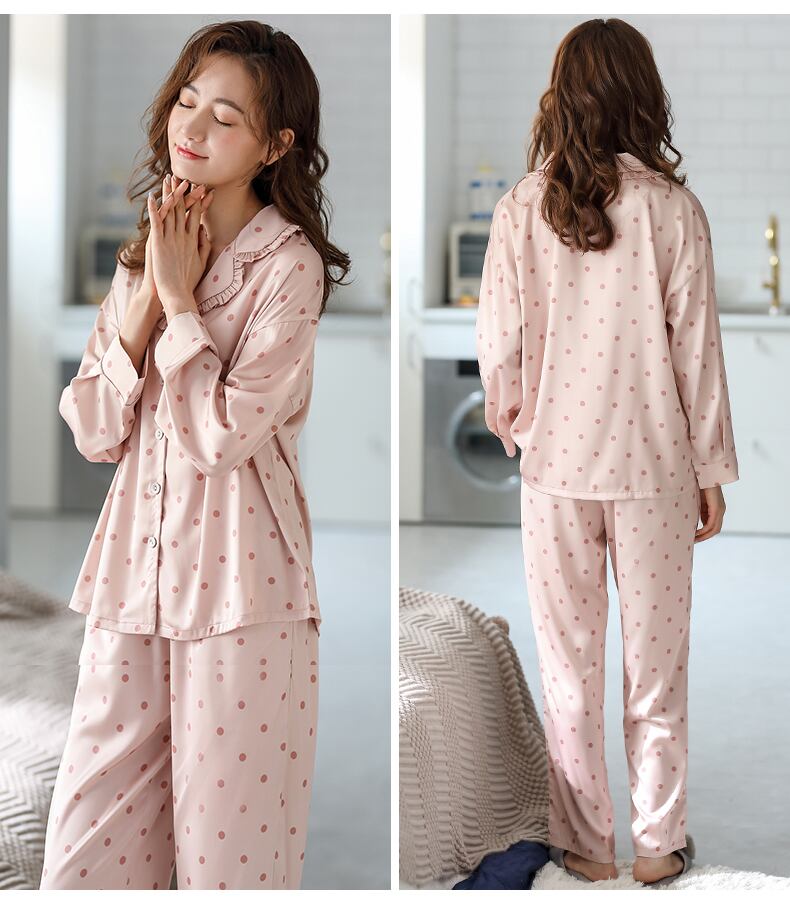 2021年新作パジャマレディース春春秋モデルアイスシルク長袖家庭服シルク薄夏イミテーションシルク jial73560529766