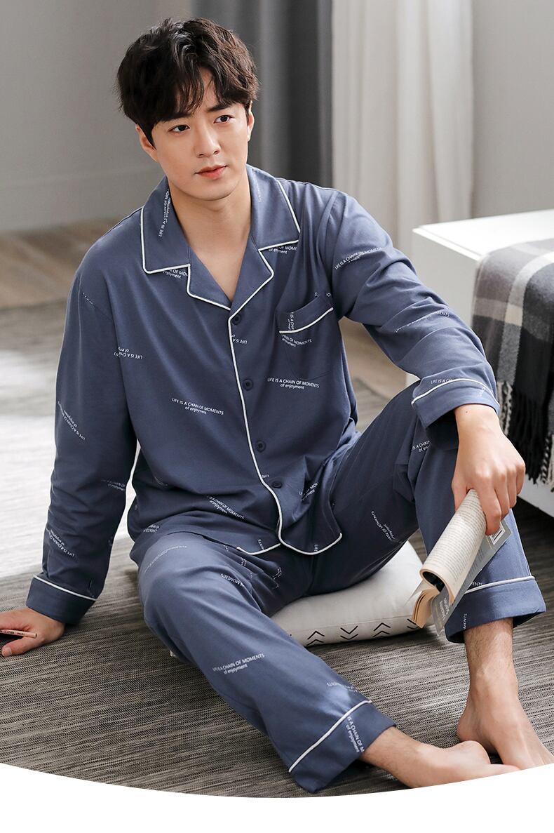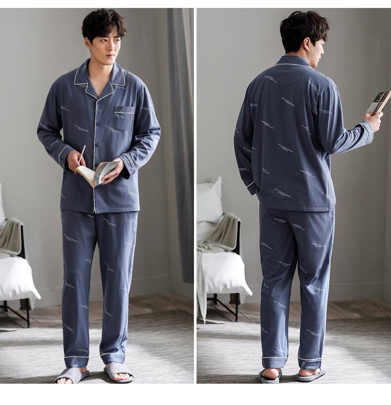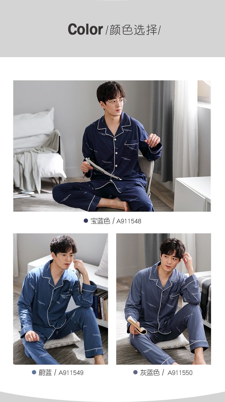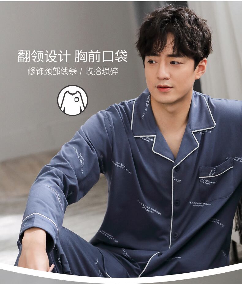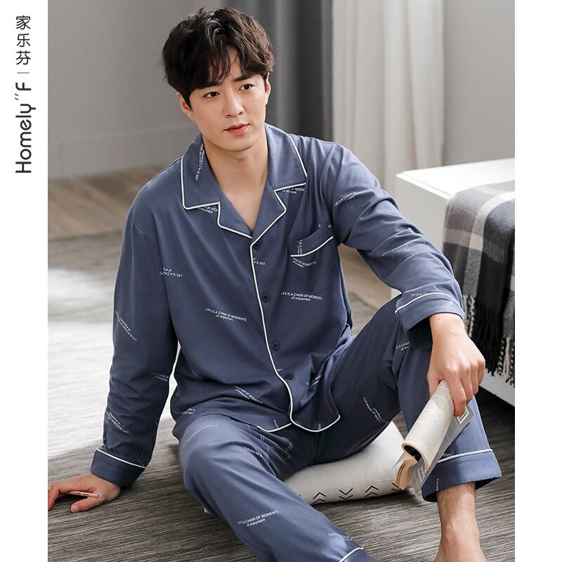 Carrefineパジャマメンズ春秋モデル秋コットン長袖ラウンジウェアメンズ秋冬薄手コットンスーツ jial24822817729
