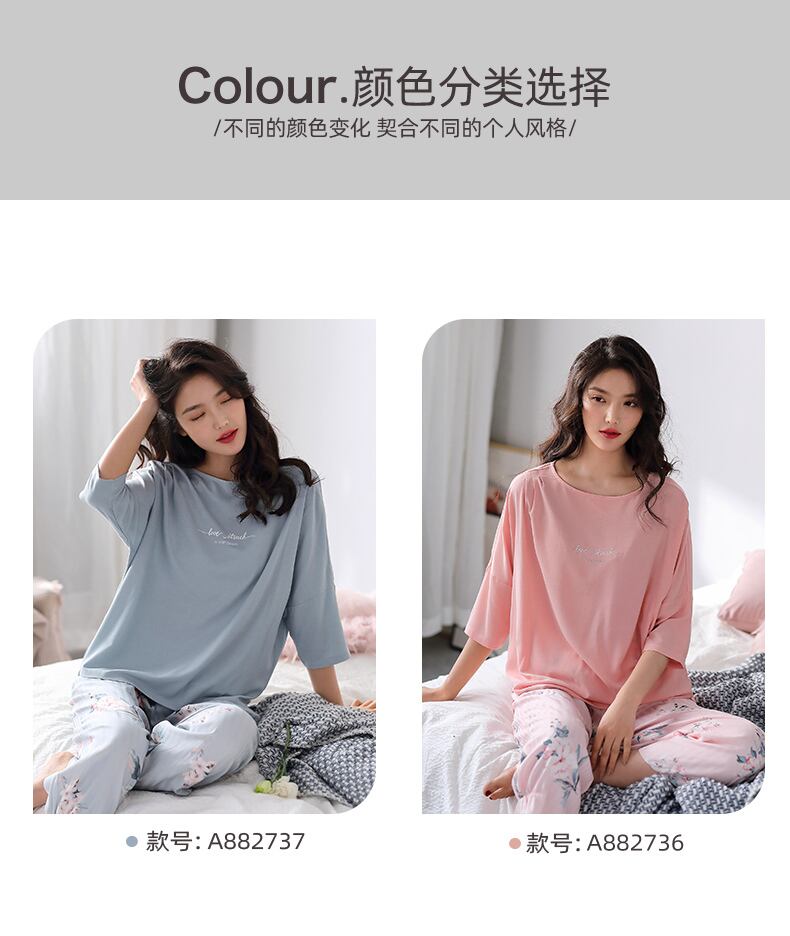 パジャマ春春夏薄手のコットン長袖3/4袖ホームウェア春と秋のアウターウェアラブルスーツ jial29107814830