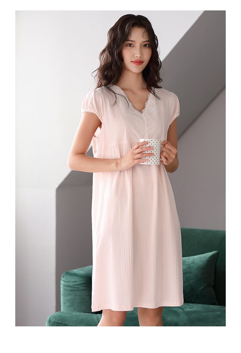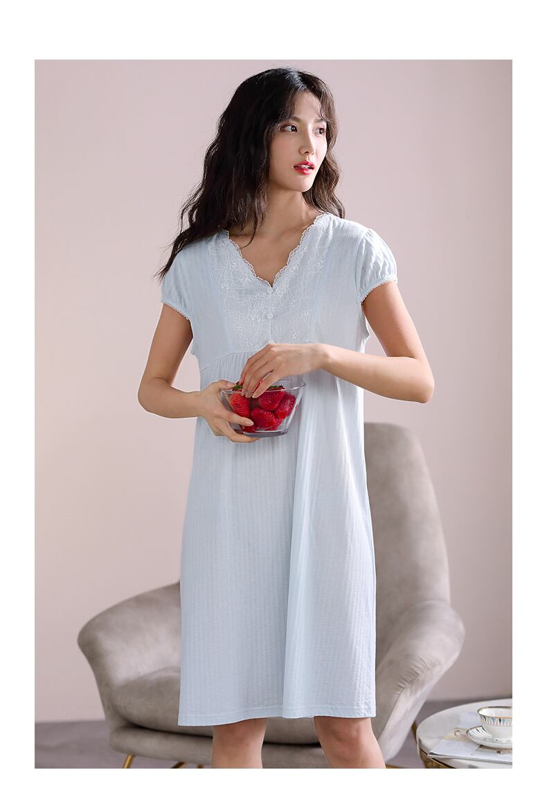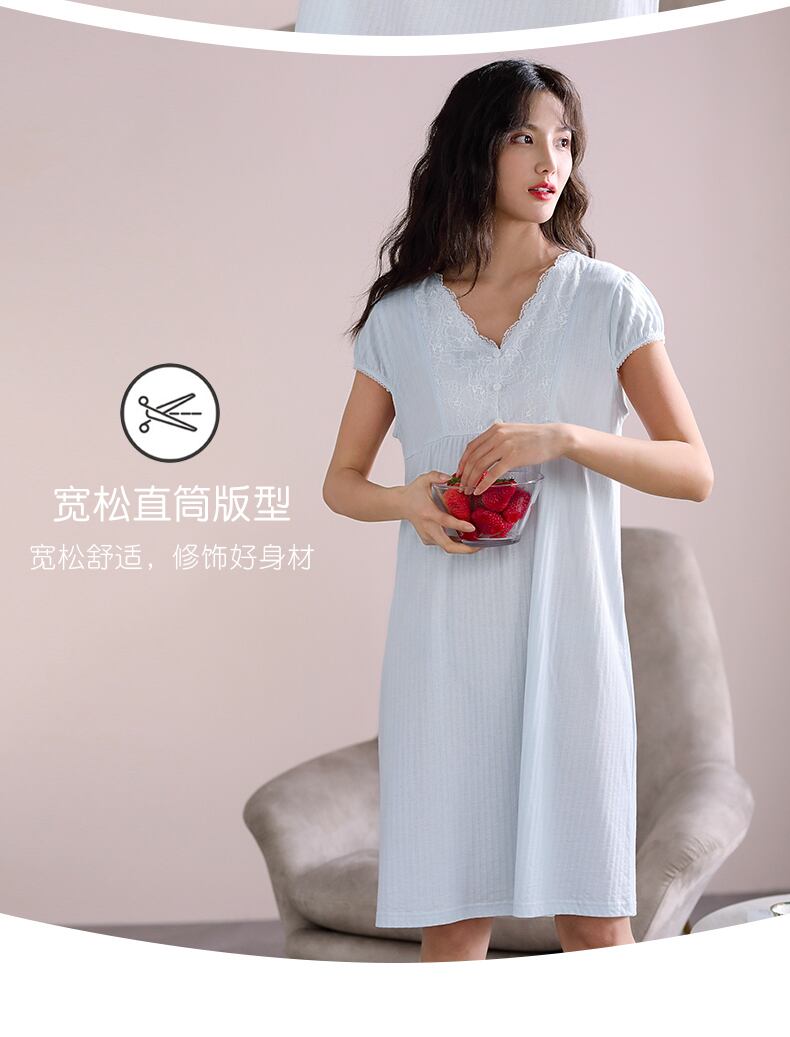 夏のネグリジェレディースパジャマ夏の綿半袖薄手の綿中スカート中年母中年大サイズ jial81682253920