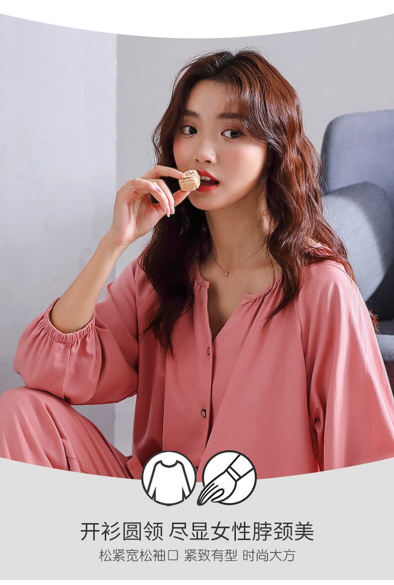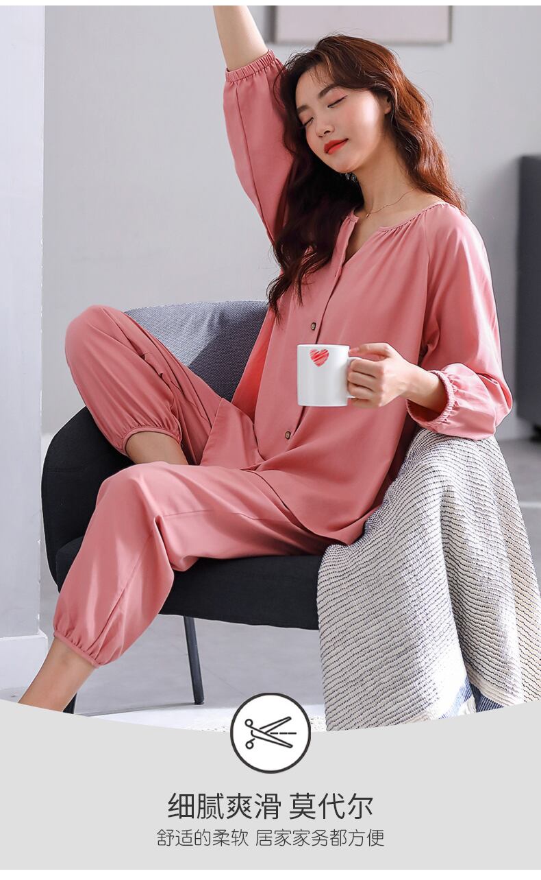 パジャマ春夏長袖レンチングモーダルホームウェア薄い春と秋のアイスシルクVネックカーディガンスーツ jial18889876791