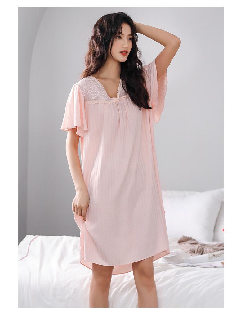 ネグリジェパジャマサマーコットン半袖ホームウェアサマーシンコットンガーゼルースプラスサイズママ jial16641190517