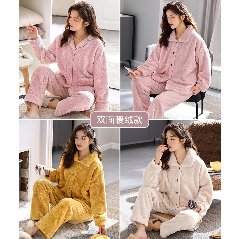2021年の新しいパジャマ女性の秋と冬のモデル冬のサンゴのフリースが厚くなり、ベルベットのフランネルの家庭服の冬のスーツ jial74975265188