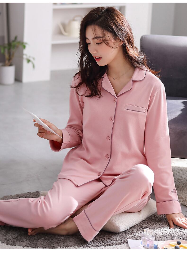 新しいパジャマレディース春と秋のモデル秋の綿長袖家庭服綿薄いスーツ jial30095739475