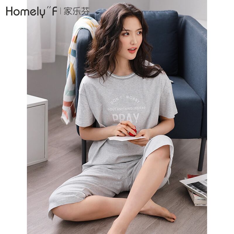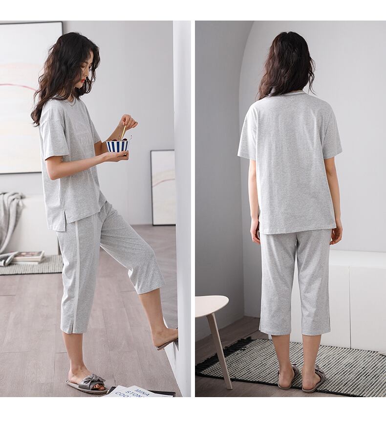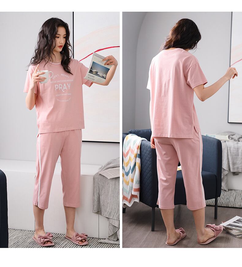 パジャマサマーコットン半袖クロップドパンツホームウェアサマーシンコットンツーピーススーツ jial63545253802