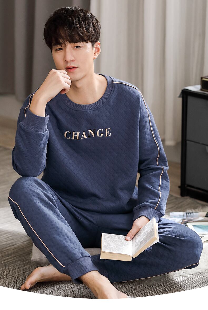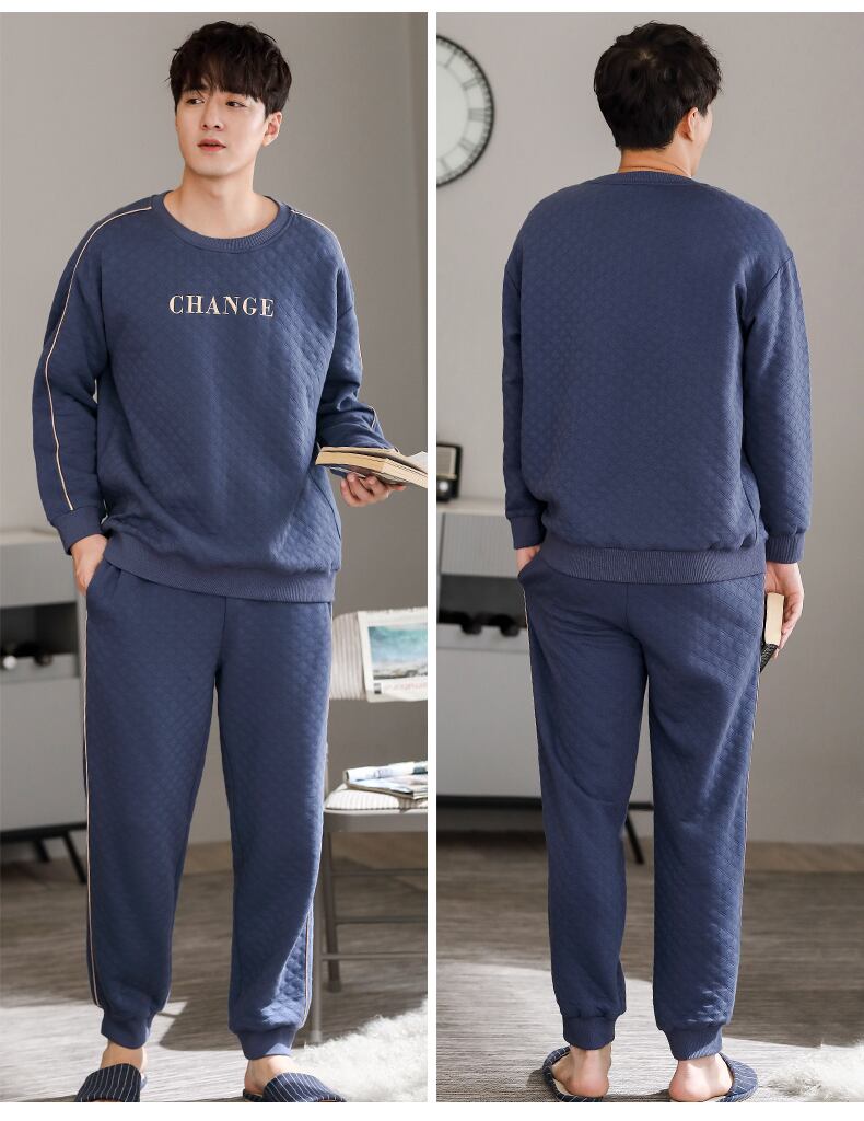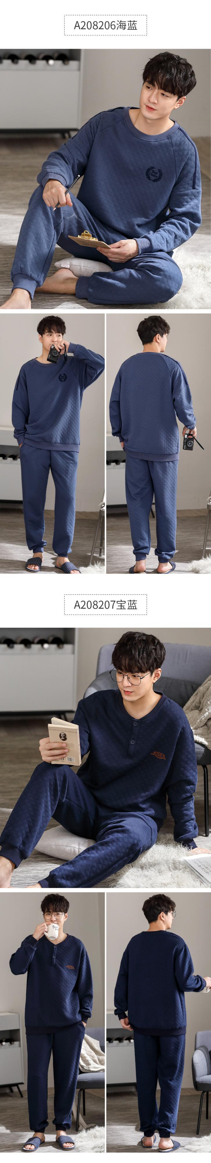 パジャマメンズ春秋長袖コットン厚手の家庭服秋冬薄手コットンエアコットン中間層スーツ jial70835419993