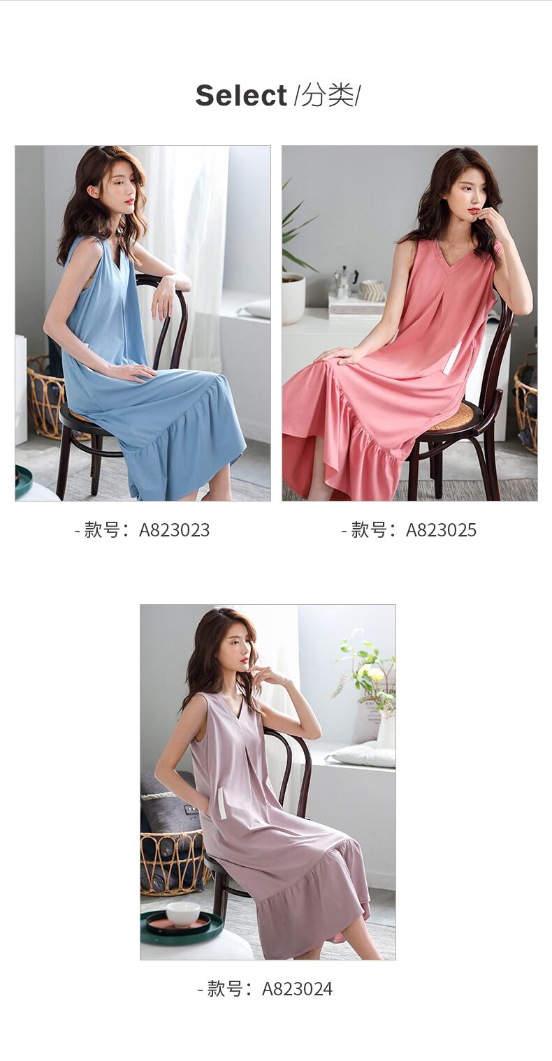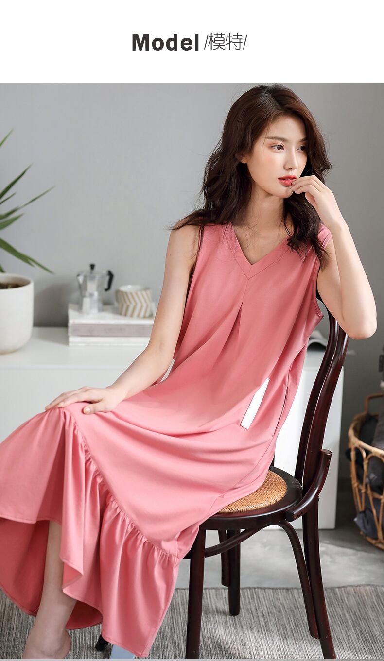 ナイトドレスレディースパジャマ夏夏薄手のコットンベストノースリーブドレスルーズプラス膝上に長いサイズ jial12966257906