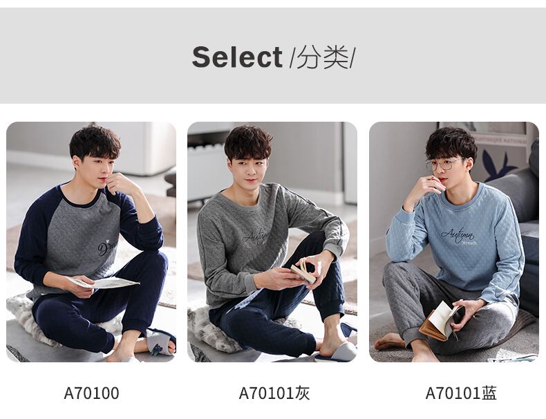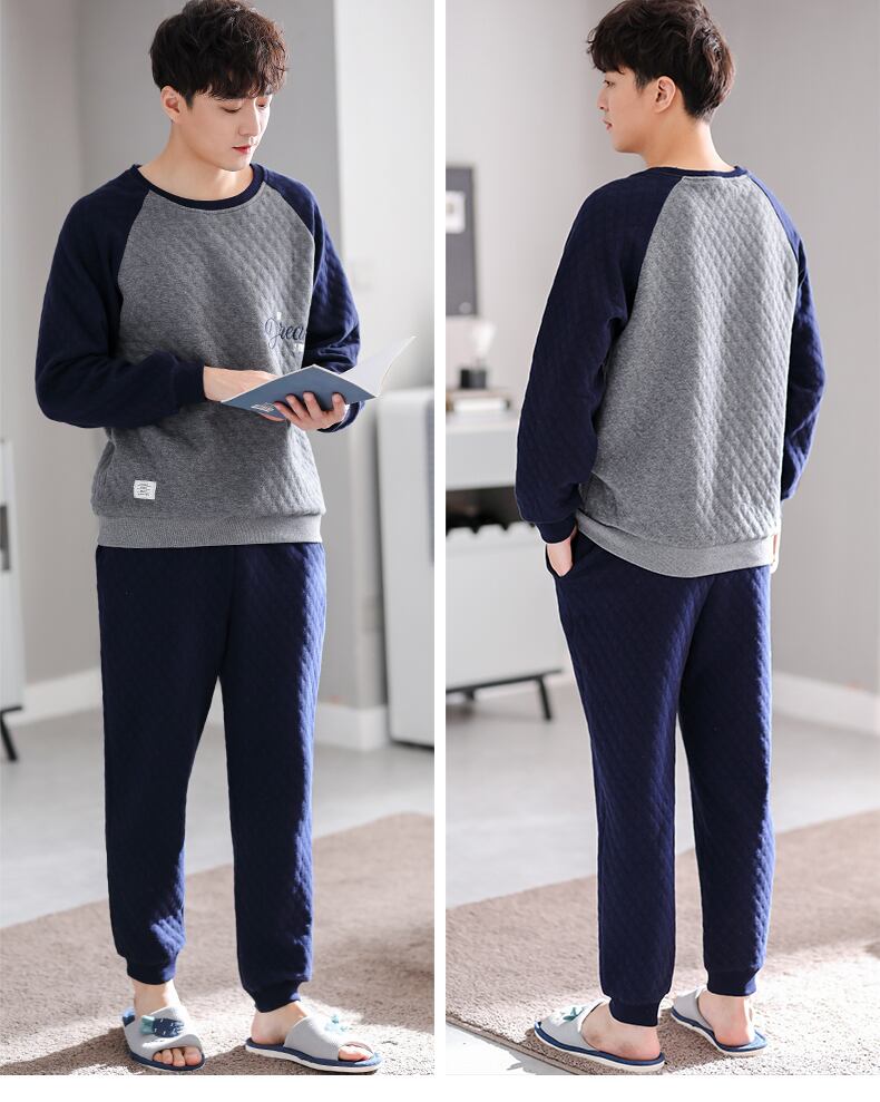 パジャマメンズ春と秋厚手の綿暖かい家庭服綿空気綿中間層キルティング秋と冬の冬 jial44843103847