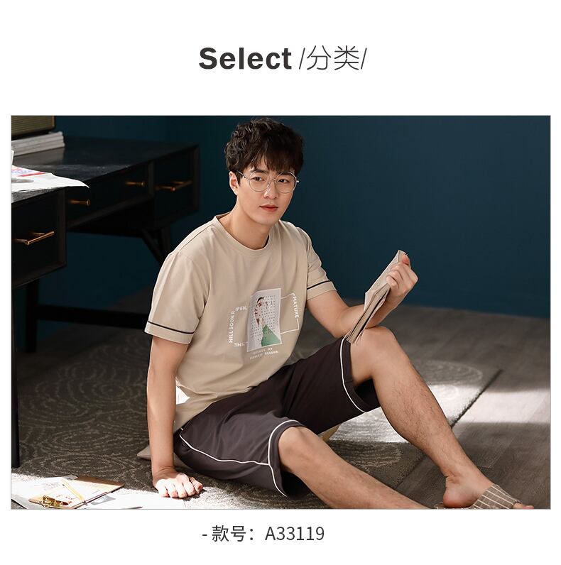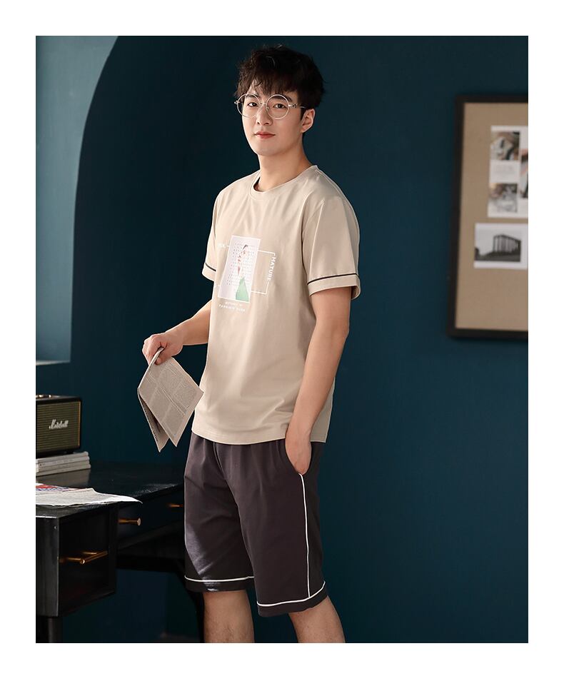 パジャマメンズサマーコットン半袖家庭服夏薄トレンドユースユースカジュアル出かけることができます jial48786048527
