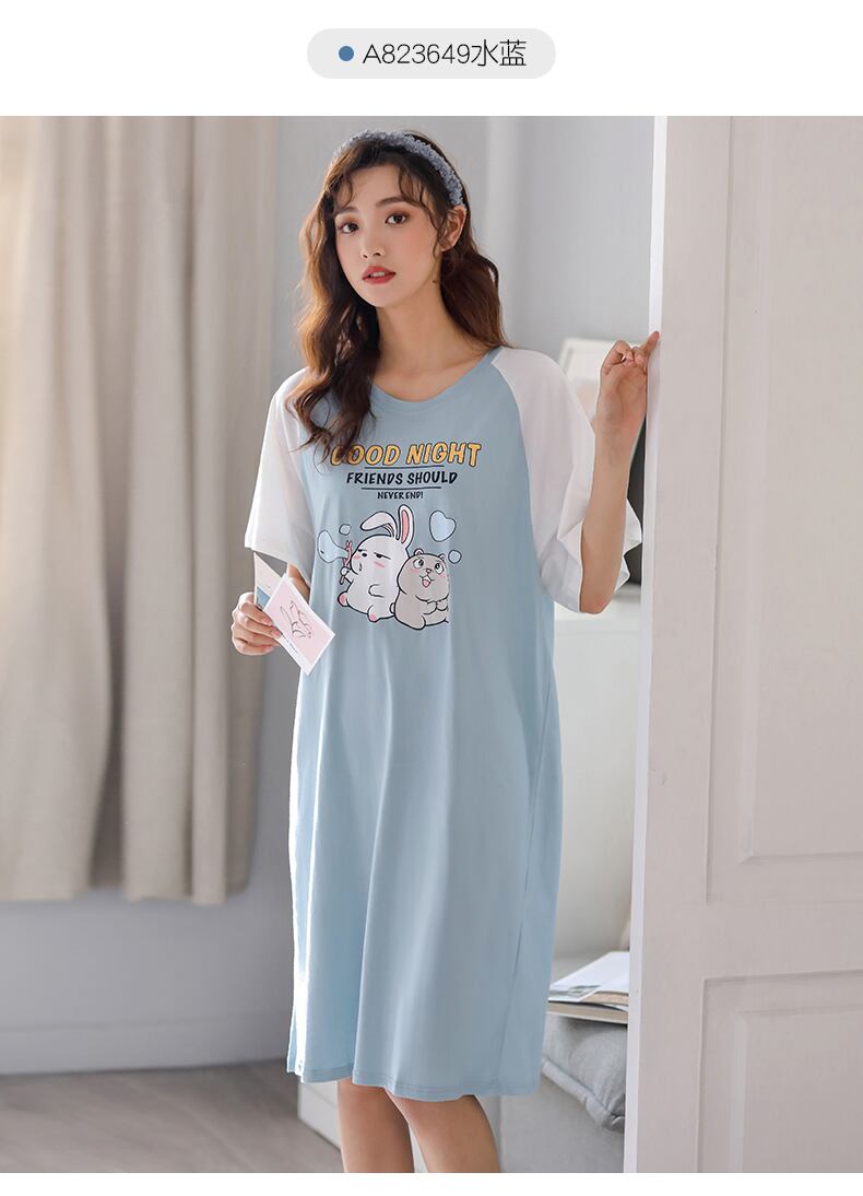 2021年の新しいネグリジェレディースパジャマ夏夏薄い綿半袖綿かわいい学生プラスサイズ jial41693124632