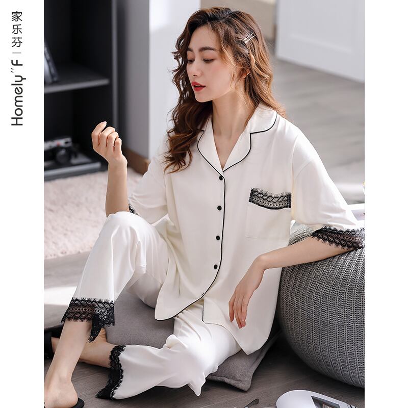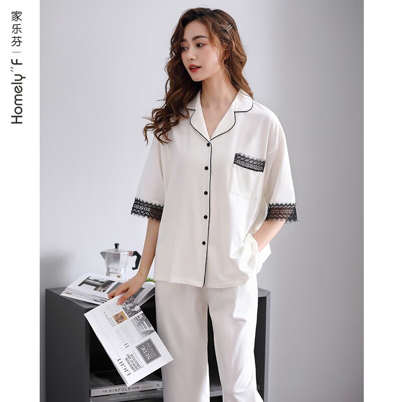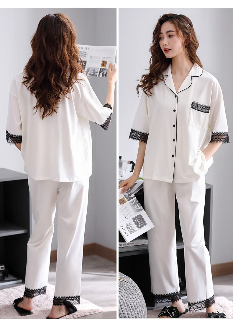 パジャマサマーコットン半袖パンツホームウェアサマーシンコットンママプラスサイズツーピーススーツ jial58338086314