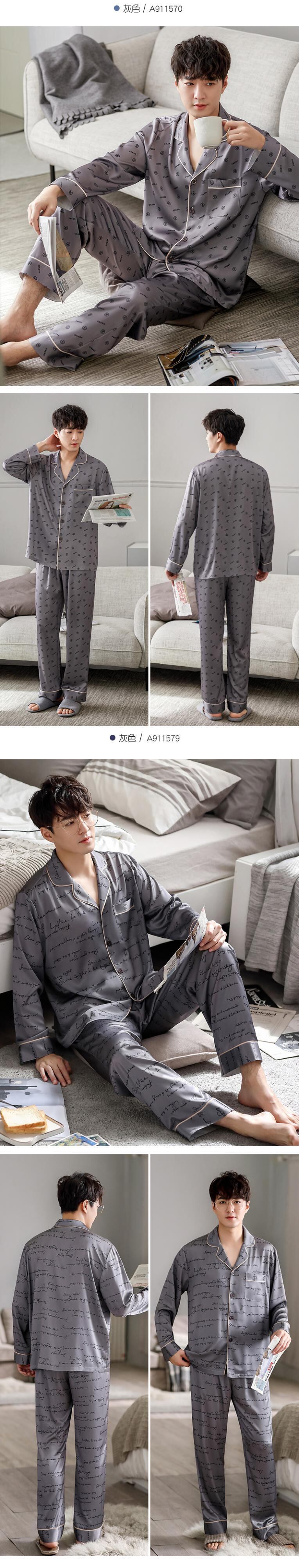 パジャマメンズ春夏夏長袖シルクアイスシルクホームウェア春と秋の薄いセクションシミュレートされたシルクルーズスーツ jial59506159690
