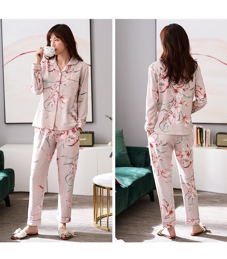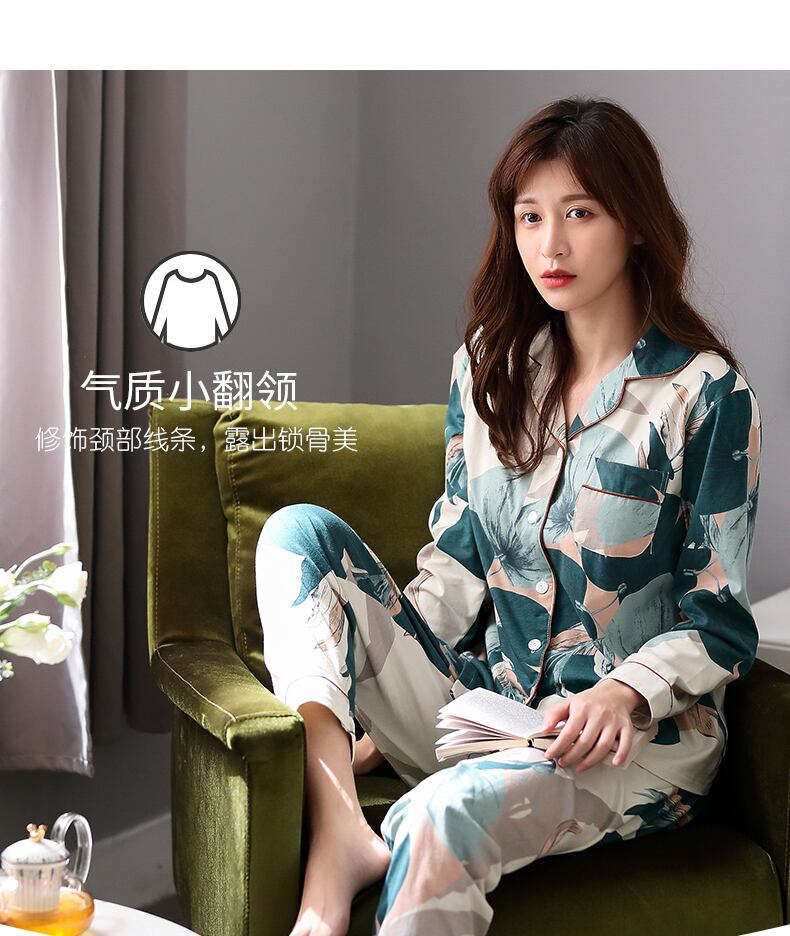 パジャマ春秋コットン長袖ホームウェアコットン春夏薄片中年ママプラスサイズスーツ jial64804156879