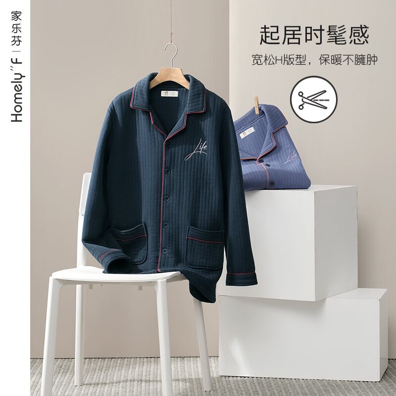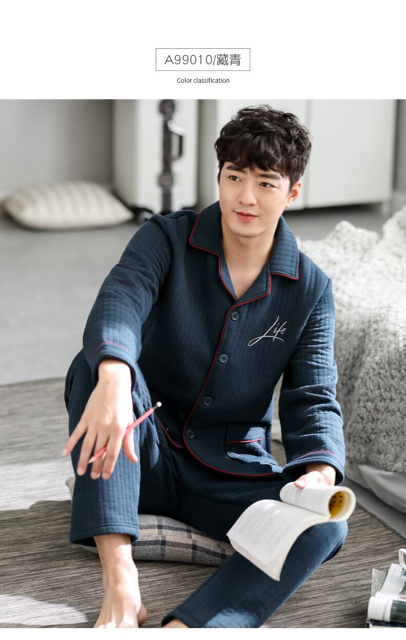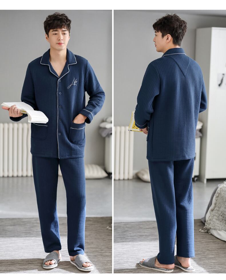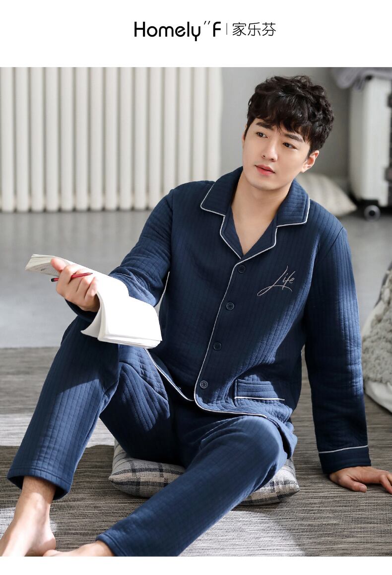 パジャマメンズ春秋厚手コットン長袖家庭服秋冬薄手中間層キルティングエアコットンスーツ jial32950581473