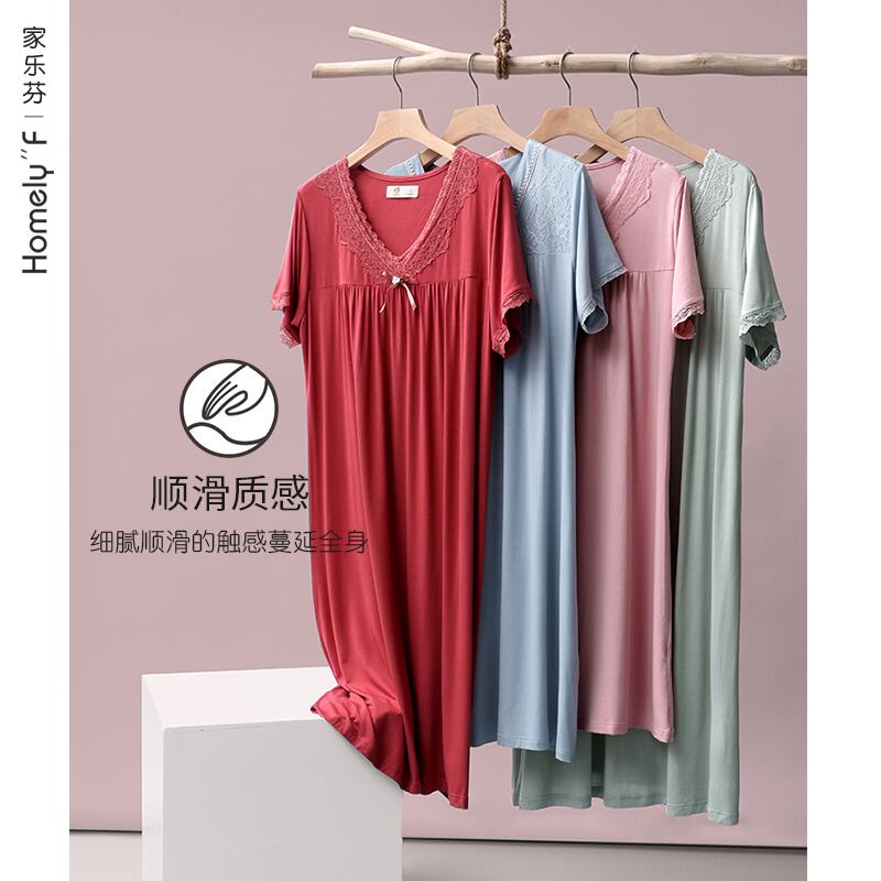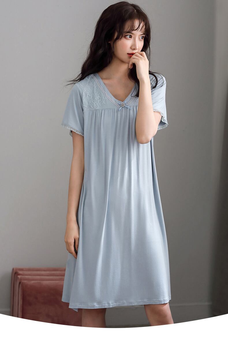 ネグリジェレディースパジャマ夏夏薄片半袖モーダルコットンシルク中年マザーズホームサービスミドル丈セクション jial25190249186
