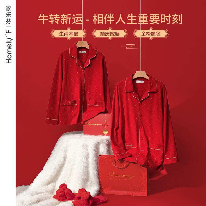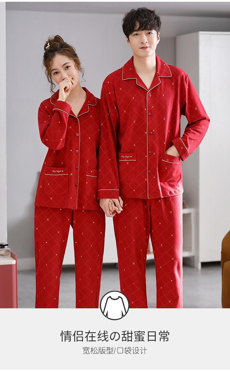 カップルの結婚式のパジャマ新婚女性の大きな赤い綿の長袖の家庭服男性の出生の春と秋の秋のスーツ jial9337954001