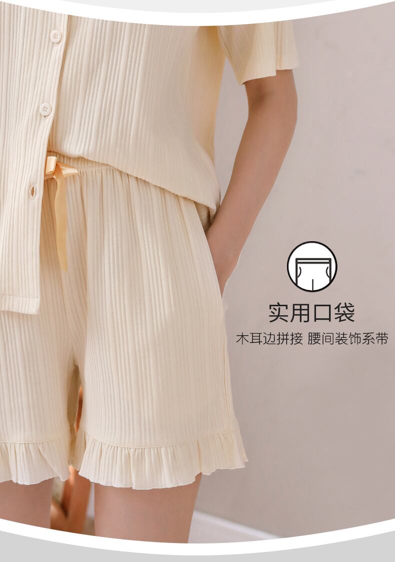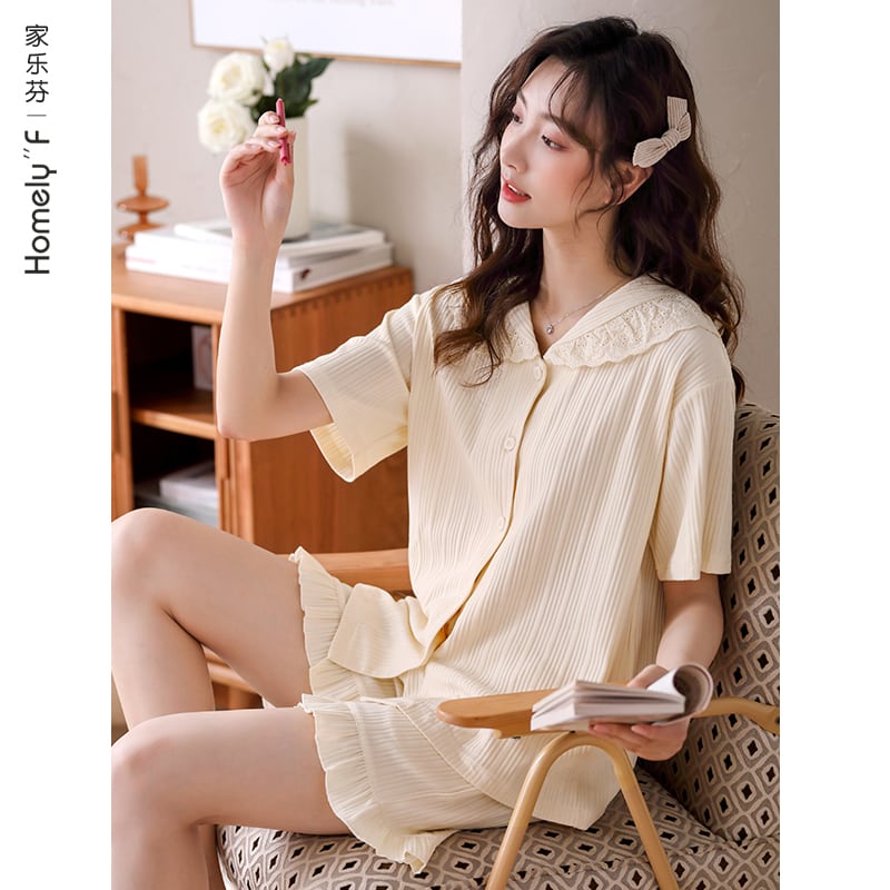 Carrefineパジャマレディースサマーコットン半袖ショーツホームウェアサマーシンコットンカーディガンツーピーススーツ jial24384718972