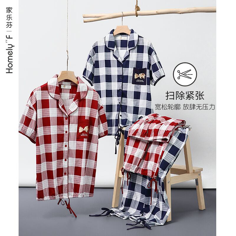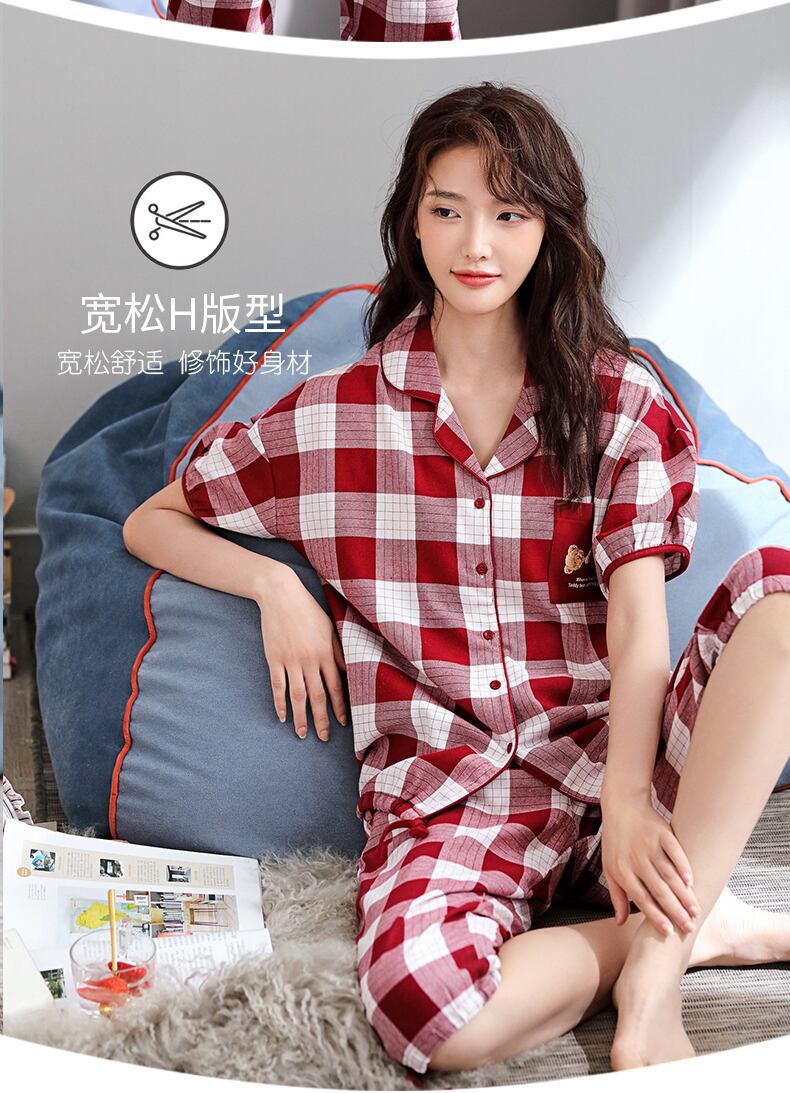 パジャマサマーコットン半袖ショーツホームウェアサマーウィメンズシンコットンカーディガンツーピーススーツ jial38728502196