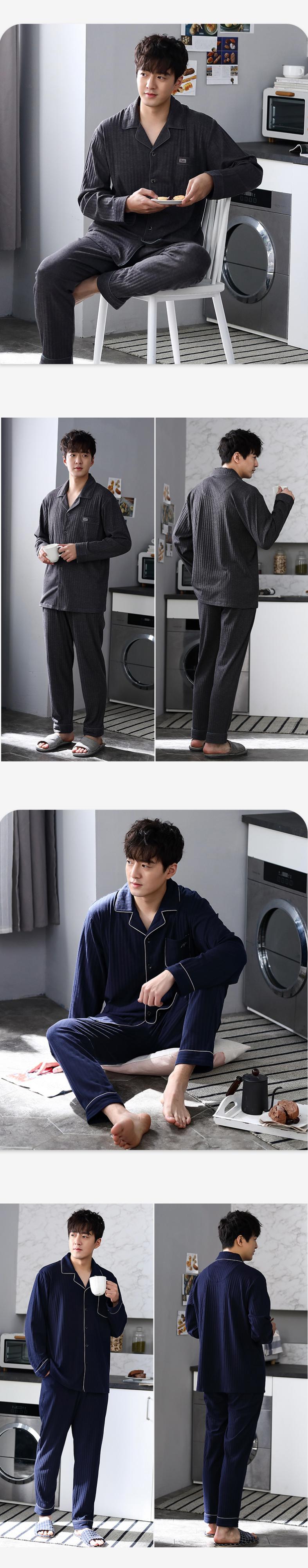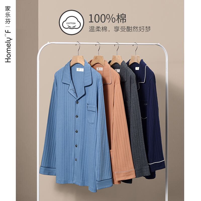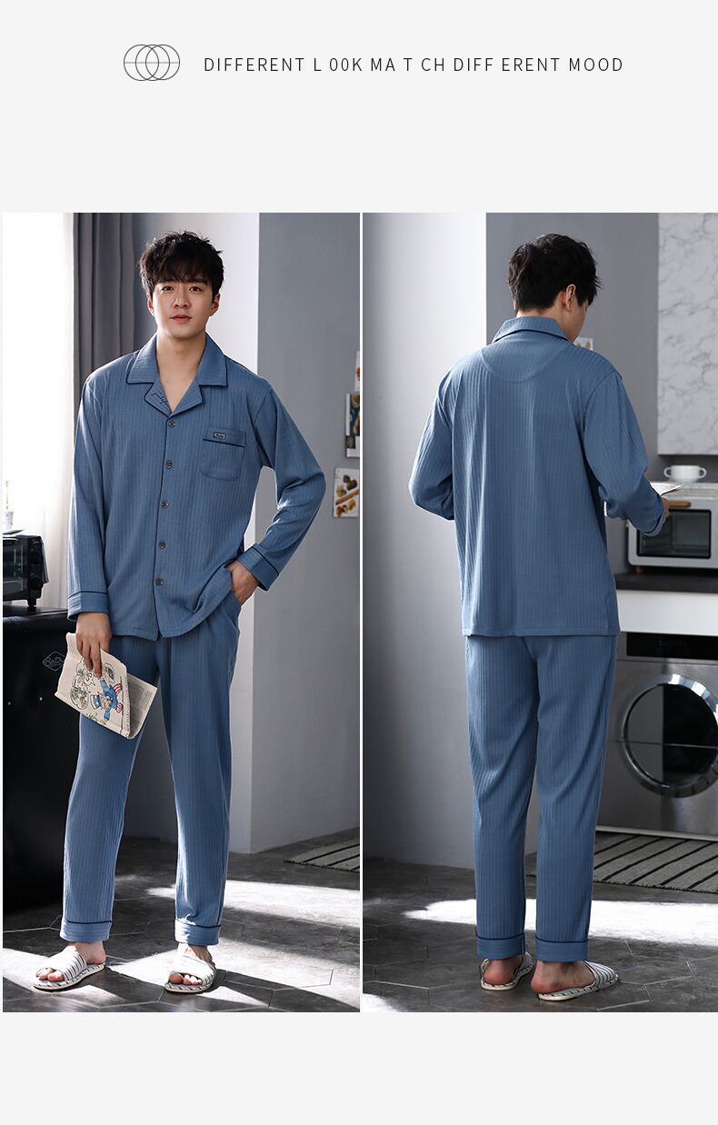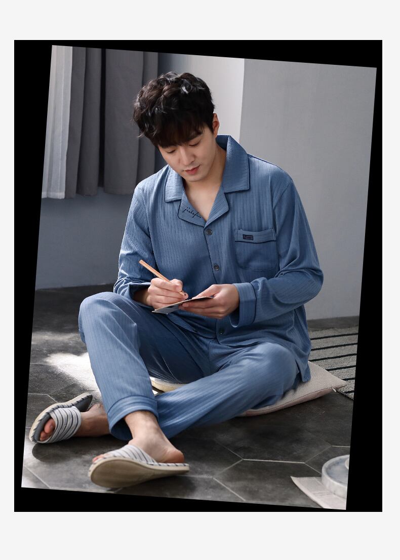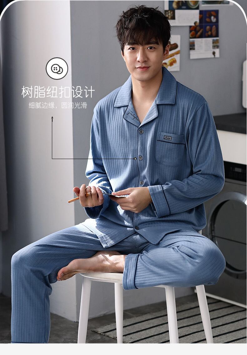 パジャマメンズ秋春秋コットン長袖ホームウェアメンズメンズコットン秋と冬の薄いお父さんのスーツ jial5010843722