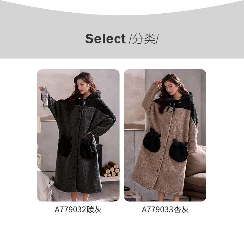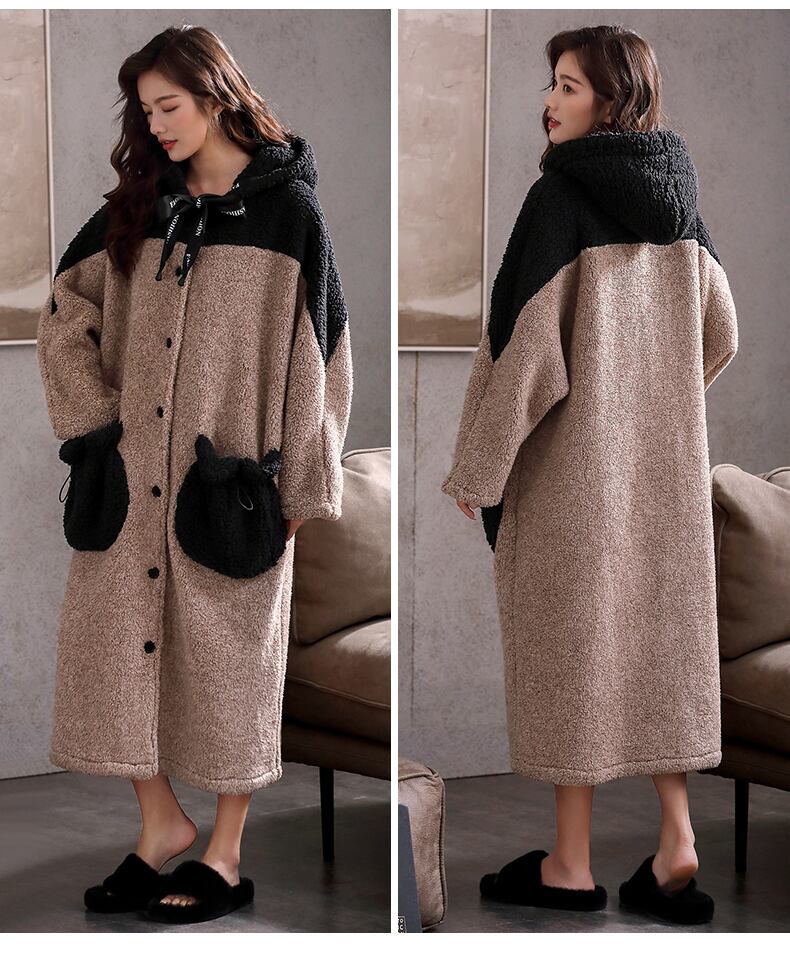 パジャマ、レディースパジャマ、秋冬、冬のサンゴフリース、厚手フリース、フランネル、ロングバスローブ、家庭服、暖かい jial70503731280