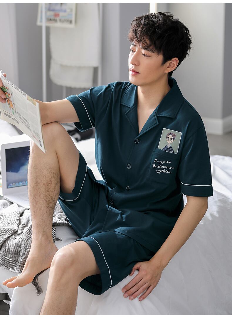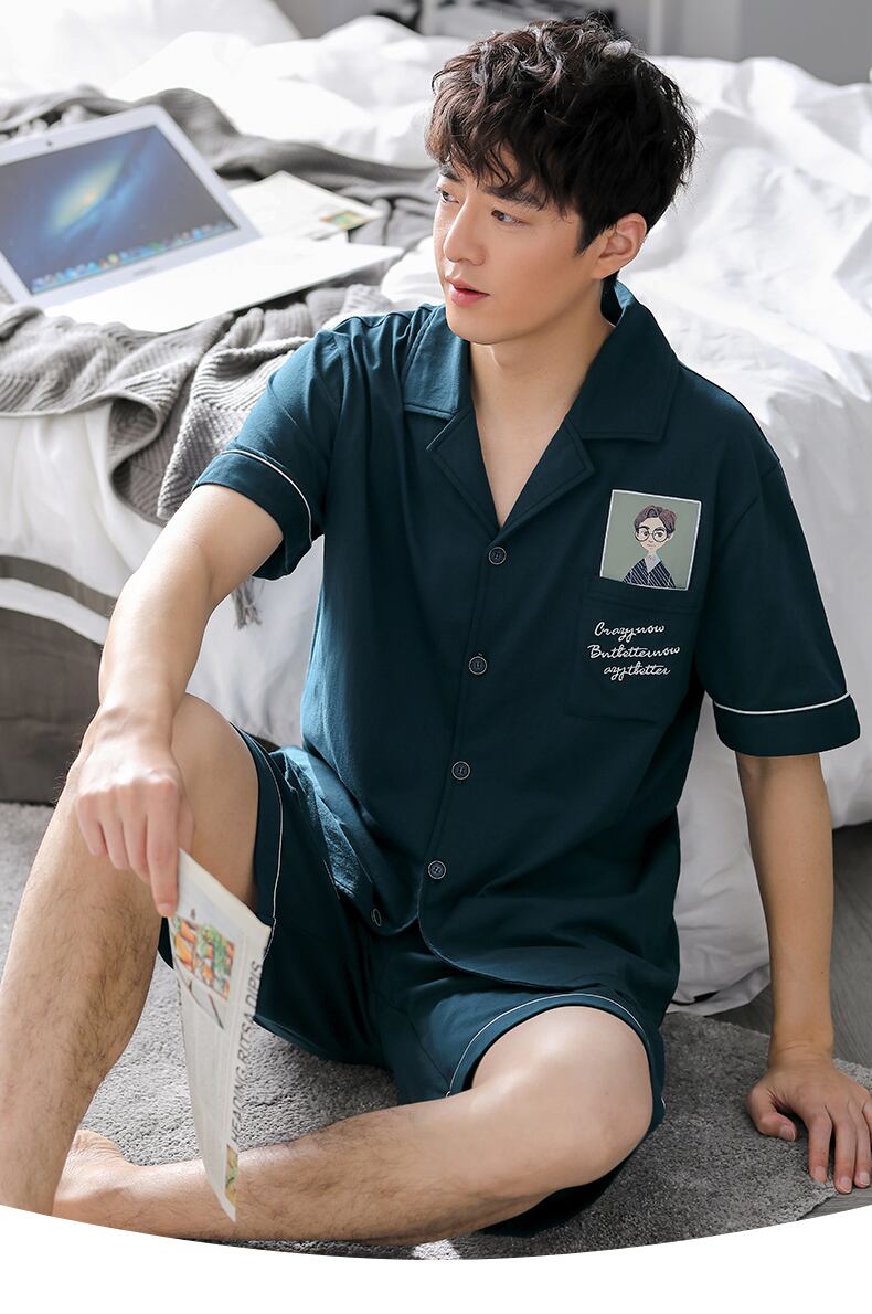 2021年新作パジャマメンズサマーコットン半袖ショーツホームウェアメンズサマー薄手コットンスーツ jial69035555864