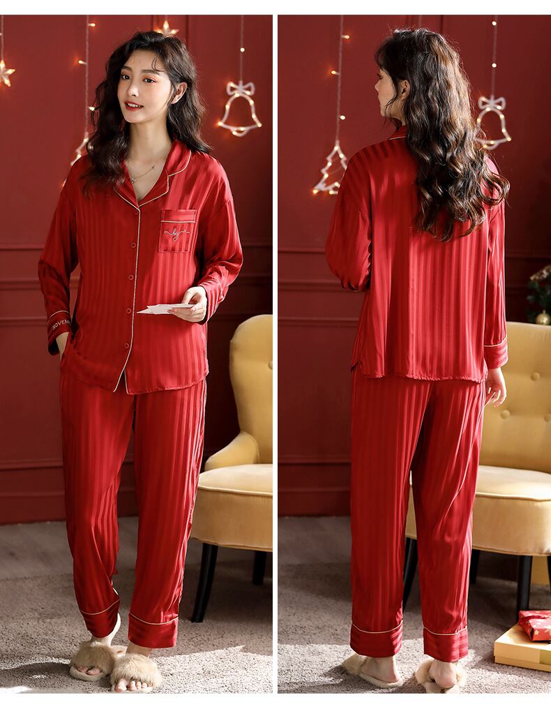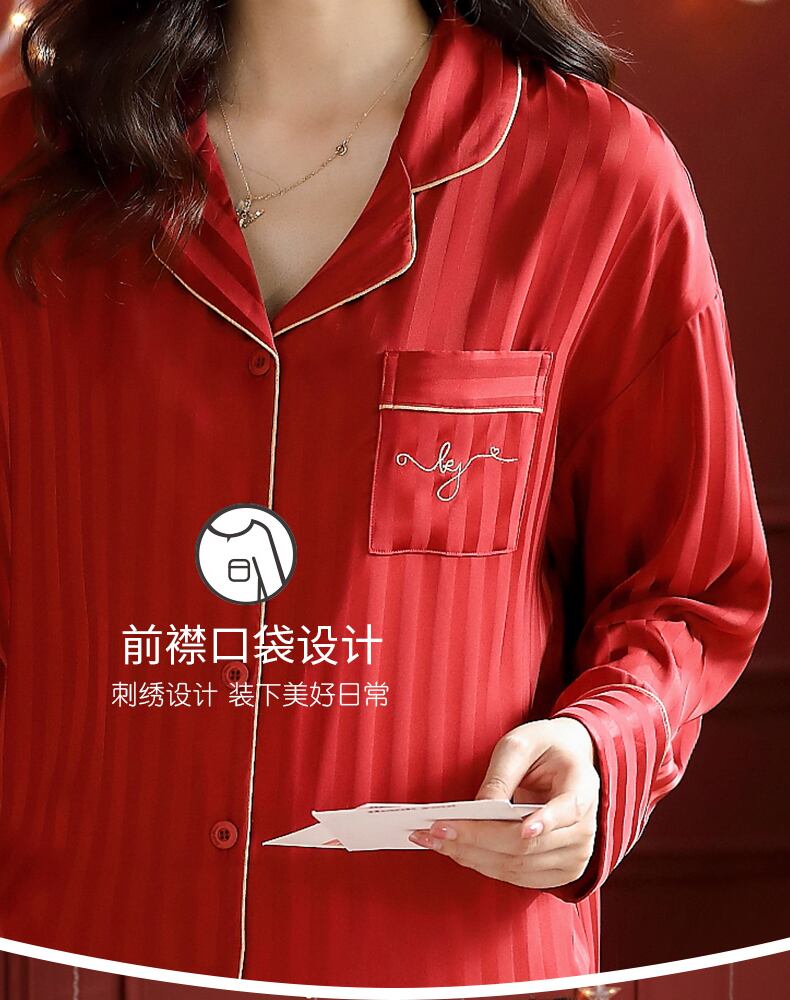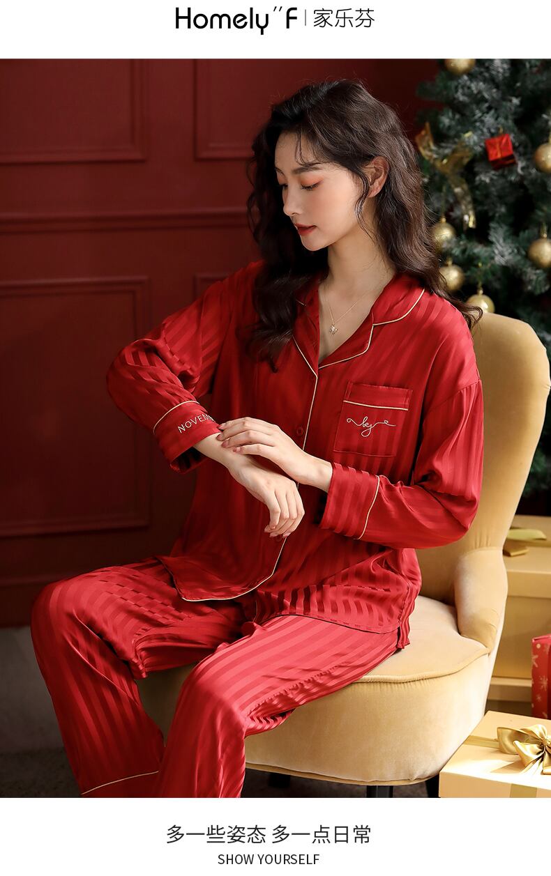パジャマ春と秋秋シルクアイスシルク長袖ホームウェアビッグレッドベンミング年春と夏の薄いスーツ jial40138255695