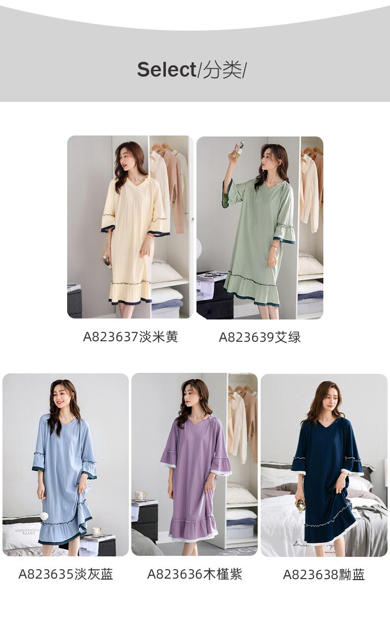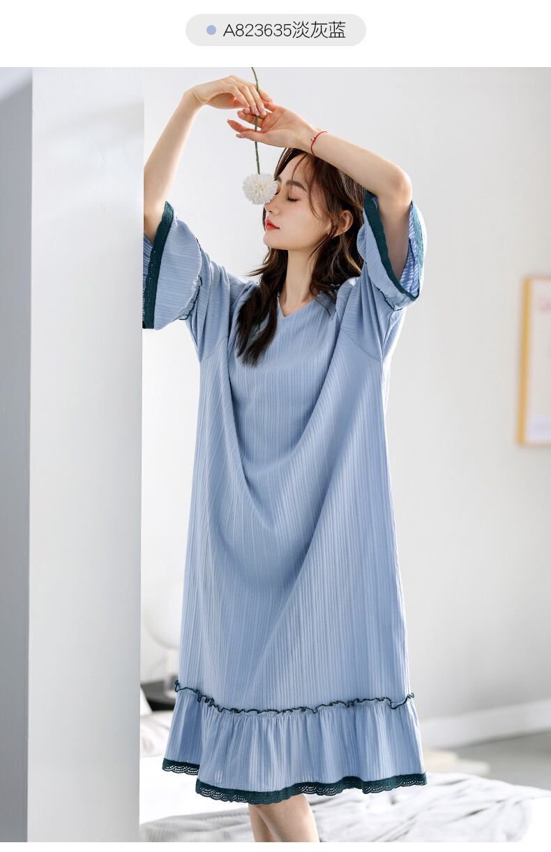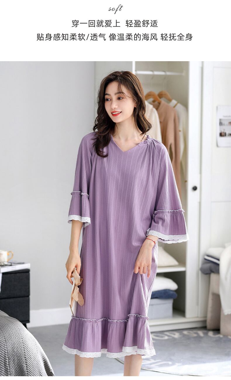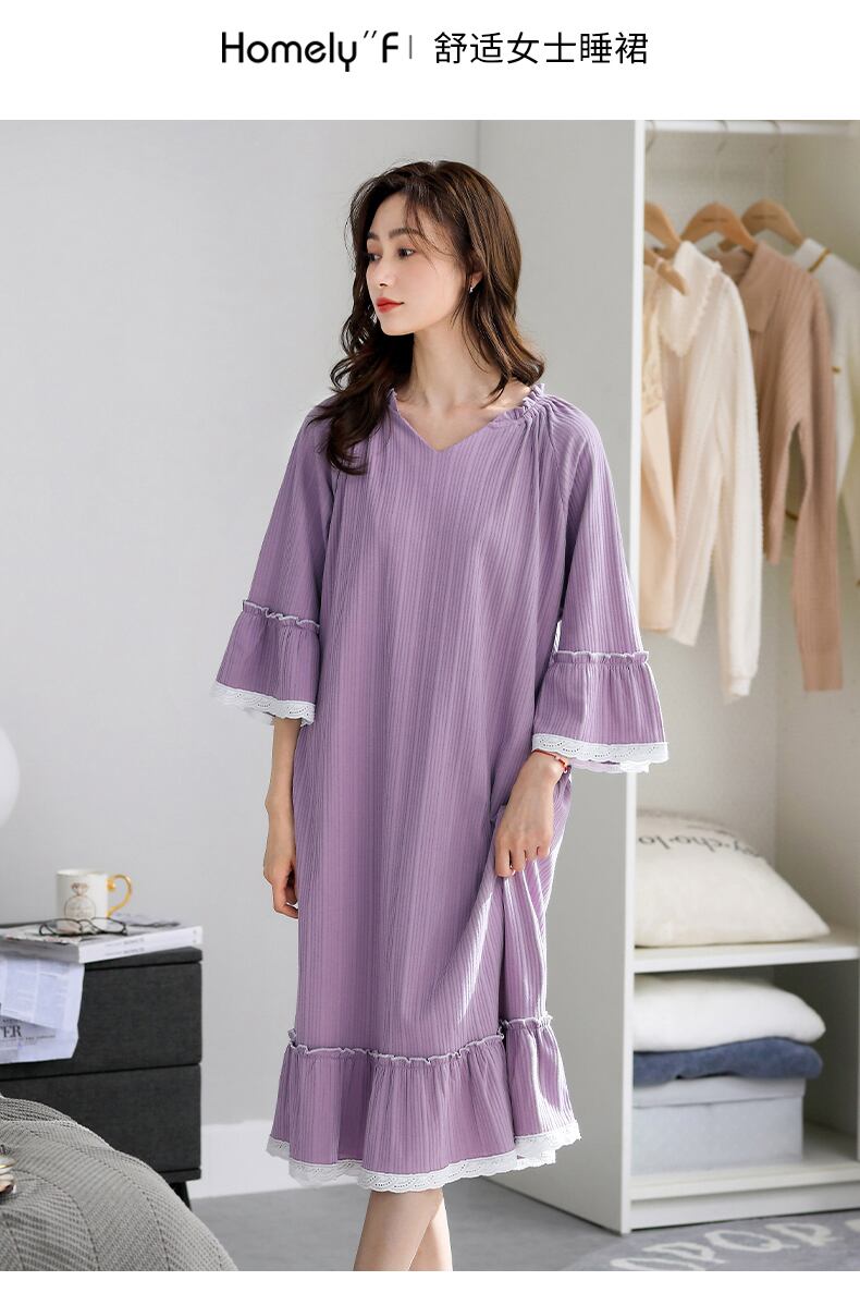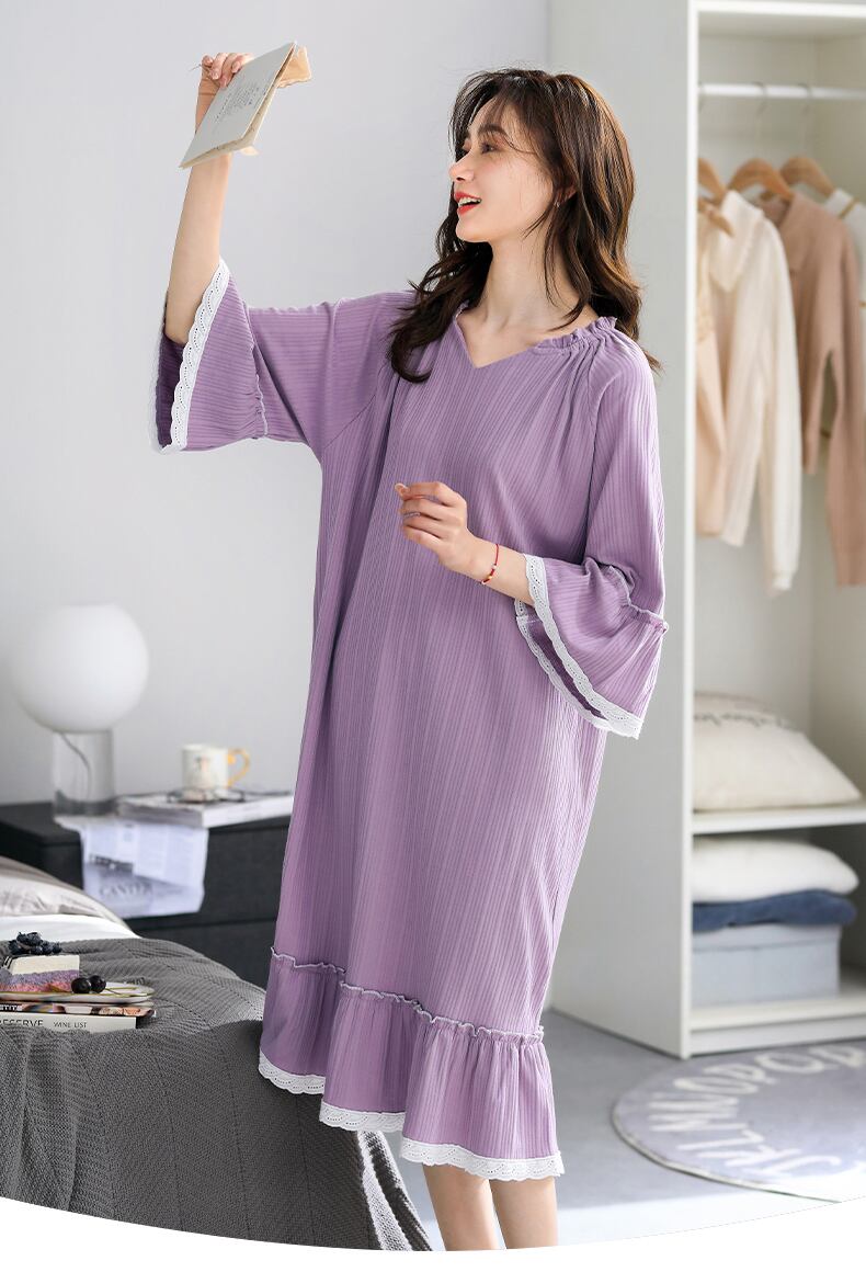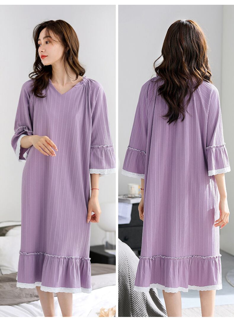 2022年新作ネグリジェレディースネグリジェ春秋純綿長袖七分袖プリンセススタイル大サイズ長夏 jial63256875719