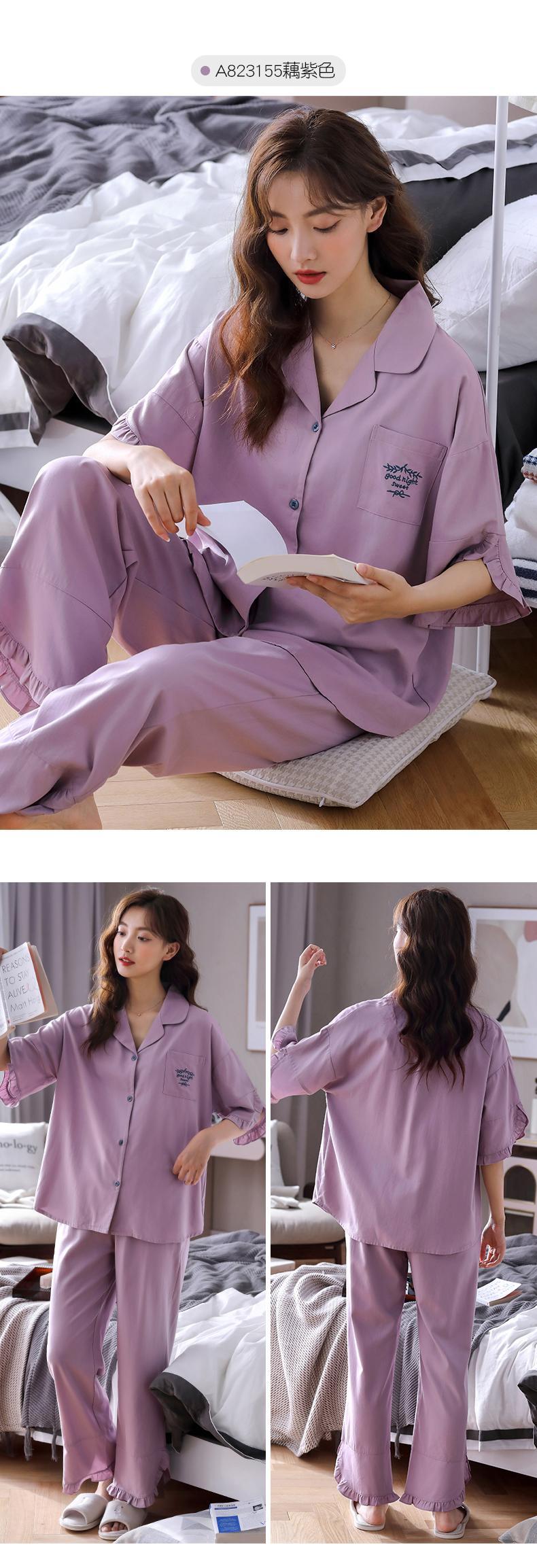 レンチングモーダルパジャマレディース半袖パンツホームウェアサマーシンアイスシルクラージサイズカーディガンツーピーススーツ jial45659755958