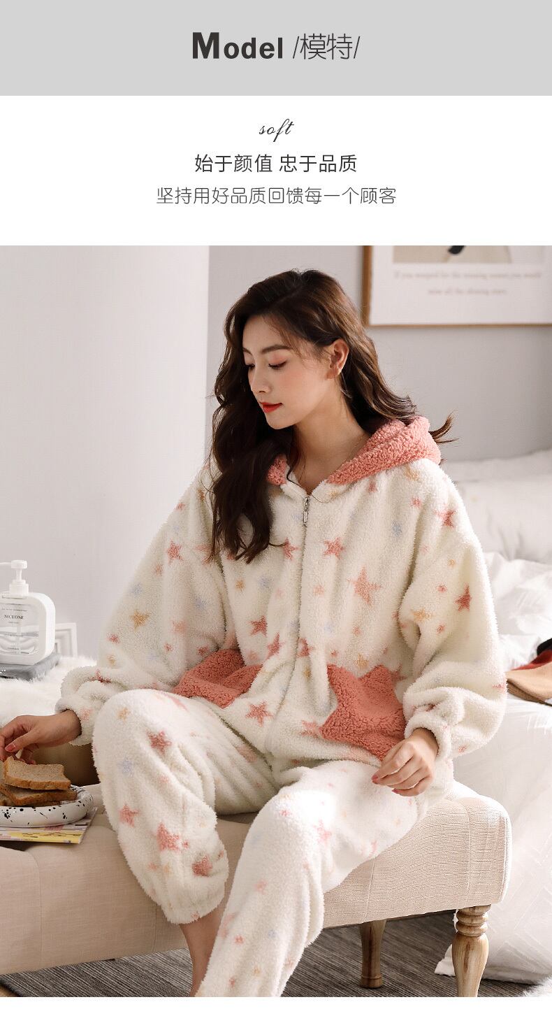 パジャマ秋と冬のコーラルフリースの肥厚とフランネルフランネルの家庭服冬のジッパー漫画セット jial14149368552