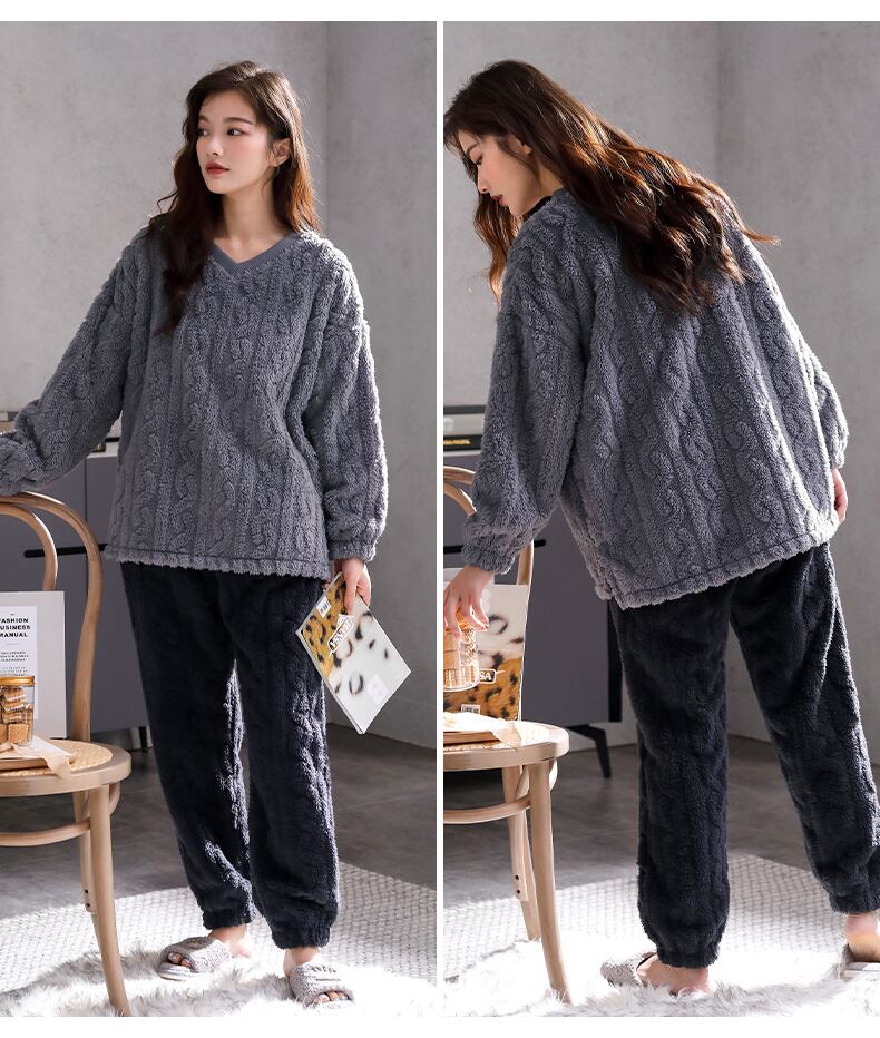 パジャマ秋冬コーラルフリースシックニングとフリースフランネルホームウェアウィンタープルオーバーラージサイズスーツ jial92973913760