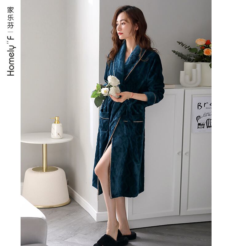 パジャマレディースナイトガウン秋と冬モデル冬コーラルベルベット肥厚プラスベルベットバスローブロングフランネル家庭服冬 jial3259342300