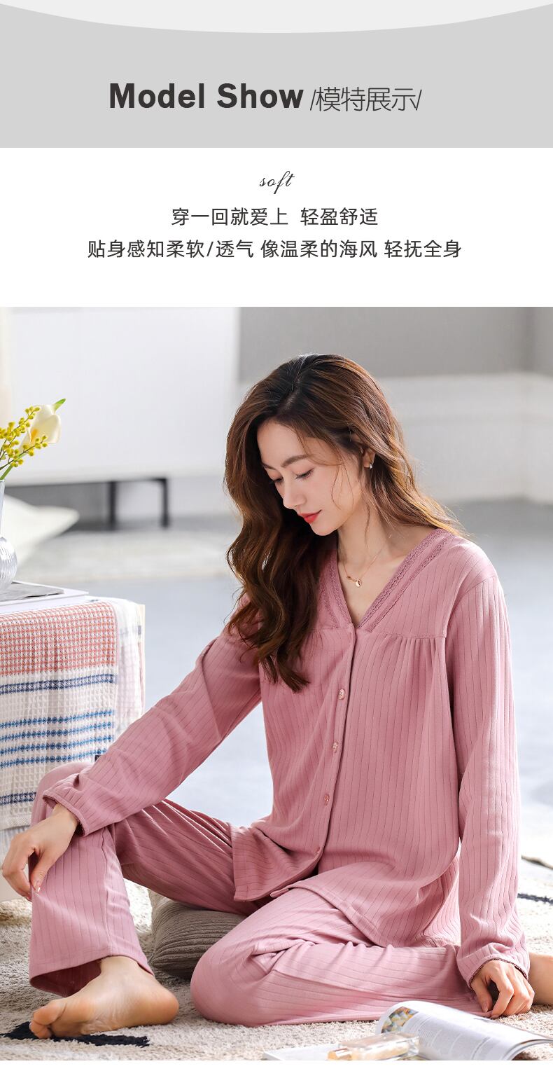 新しいパジャマ女性の春と秋の秋の綿長袖家庭服綿ハイエンドスーツ jial55972698468