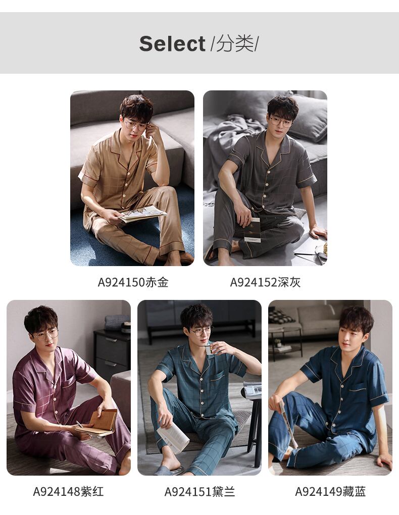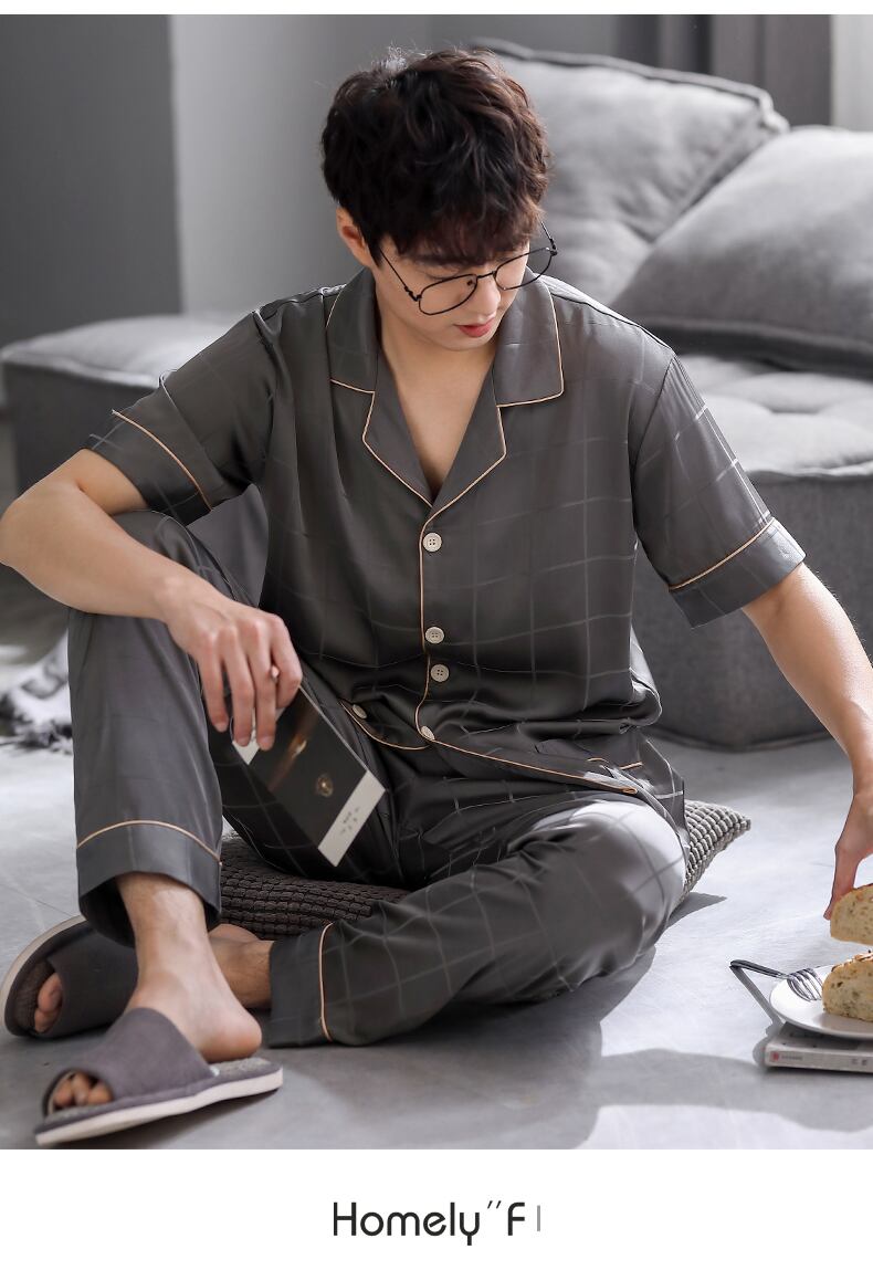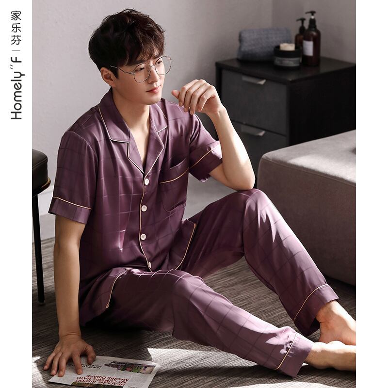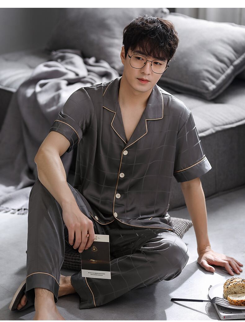 パジャマメンズサマーシルクアイスシルク半袖パンツホームウェアメンズサマーシンシミュレーションシルクラージサイズスーツ jial98264309745