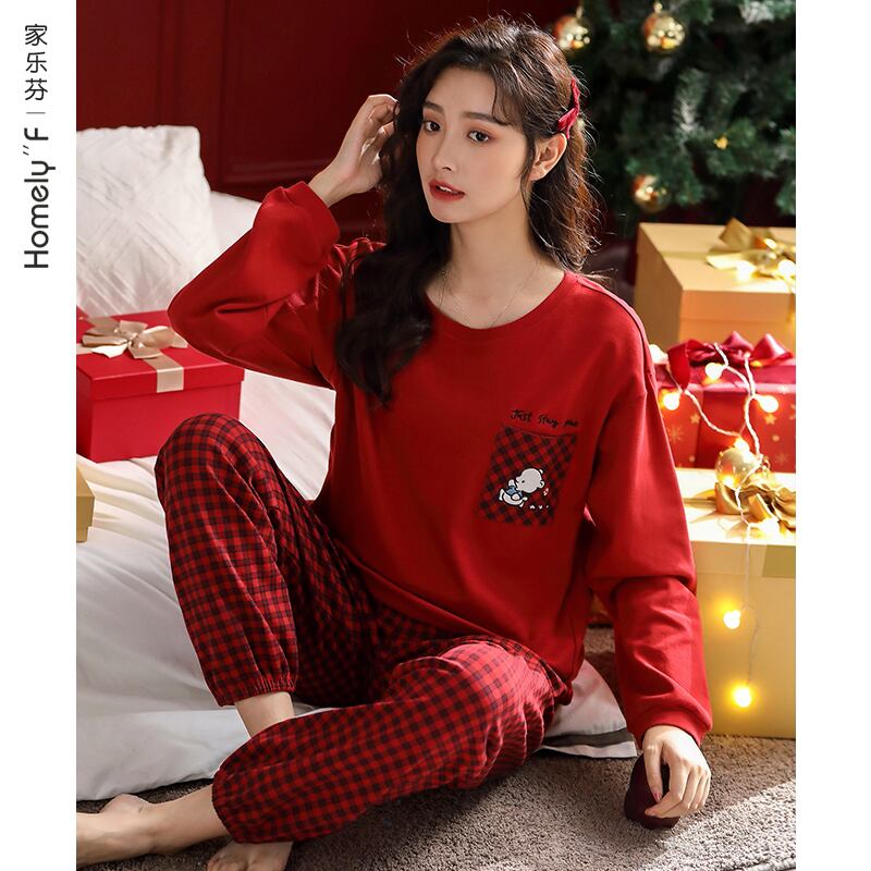 2021年の新しいパジャマの女性の春と秋のモデル秋の綿の長袖の家庭服大きな赤い干支年の女性のスーツ jial65214112631