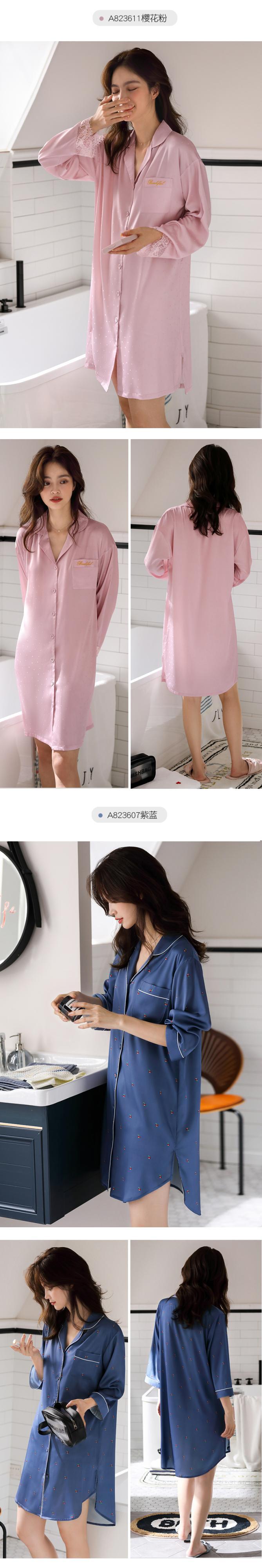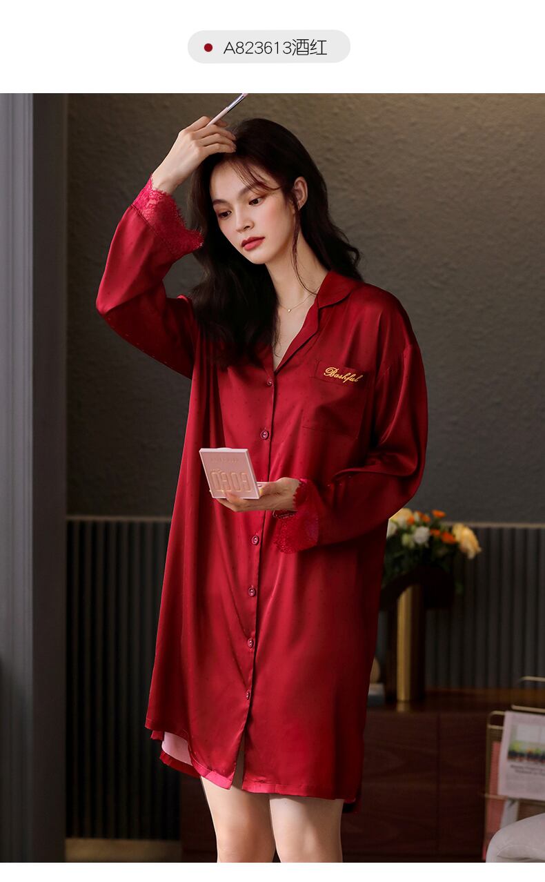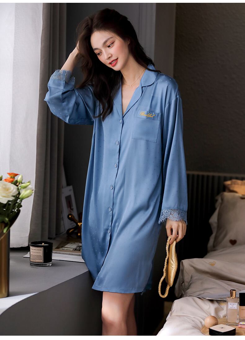 ネグリジェレディースパジャマ春夏アイスシルク長袖春秋薄カーディガンシャツ夏シミュレーションシルクロング jial66835341299