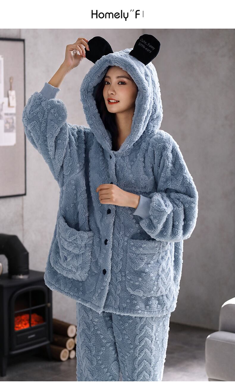 2021年の新しいパジャマ女性の秋と冬のモデル冬のサンゴのフリースが厚くなり、ベルベットのフランネルの家庭服の冬のスーツ jial89005070853