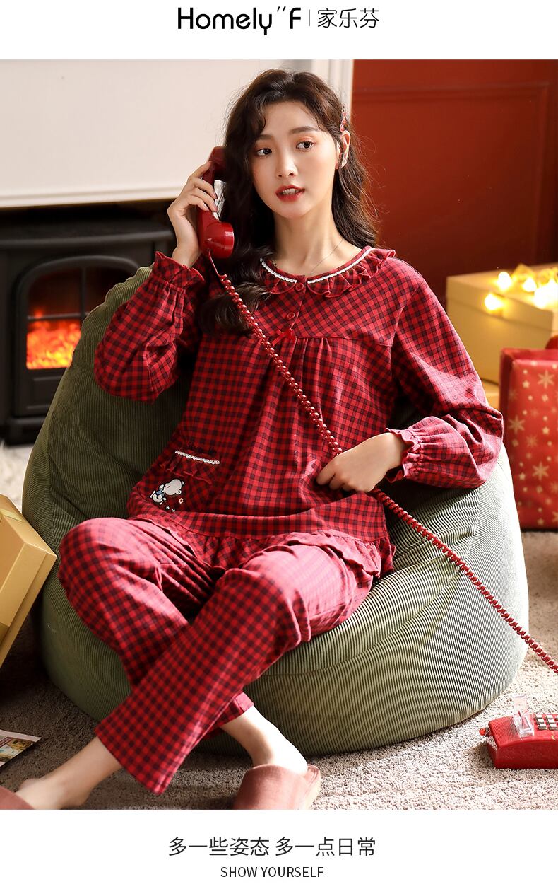 2021年の新しいパジャマの女性の春と秋のモデル秋の綿の長袖の家庭服大きな赤い干支年の女性のスーツ jial94605698070