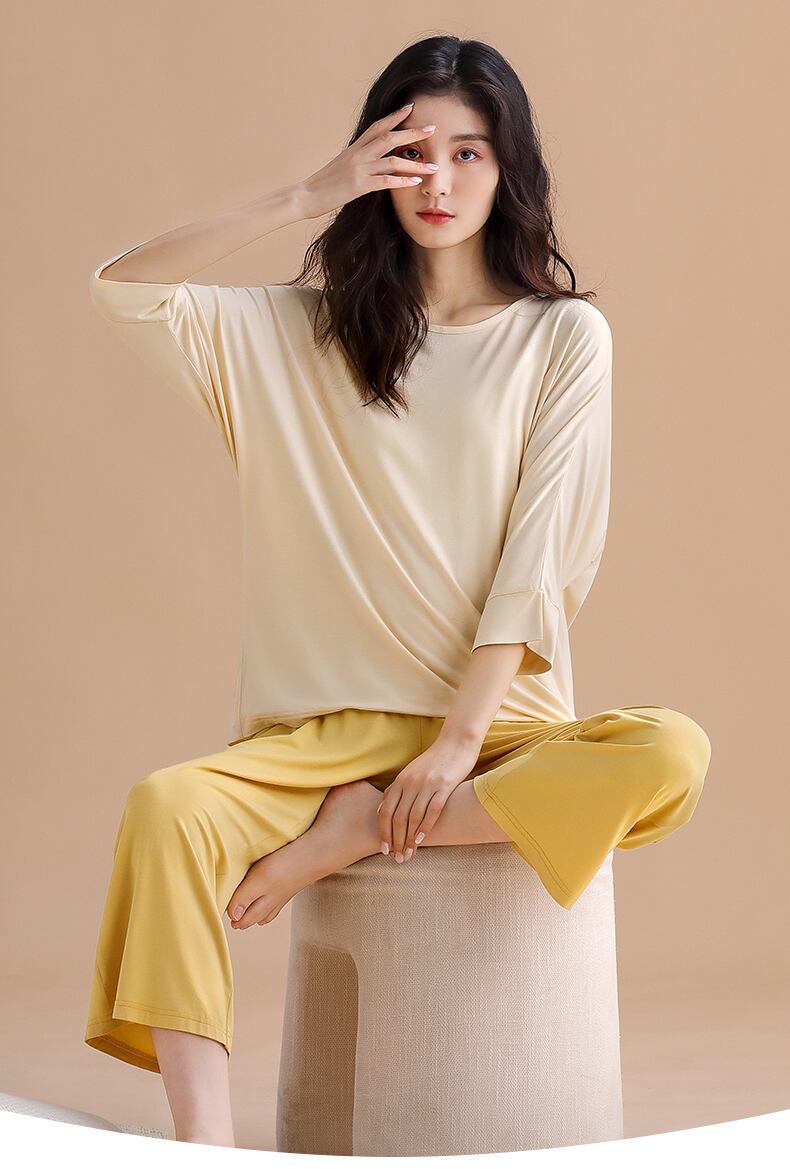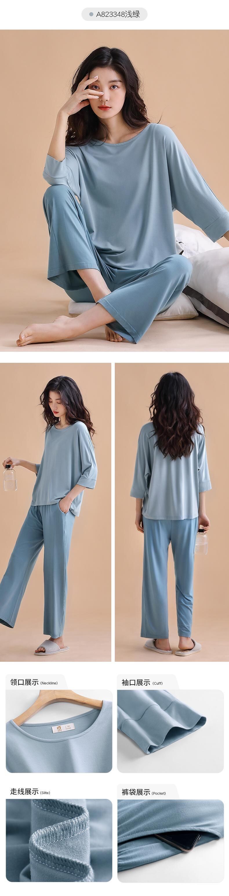 パジャマ春秋秋春3/4袖長袖ホームウェア夏モーダルラージサイズアウターウェアラブルスーツ jial28651193903