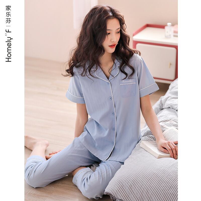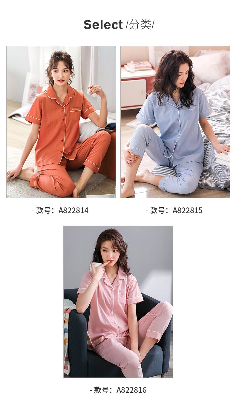 パジャマサマー半袖パンツホームウェアサマーシンテンセルコットンカーディガンプラスサイズツーピーススーツ jial28663156086